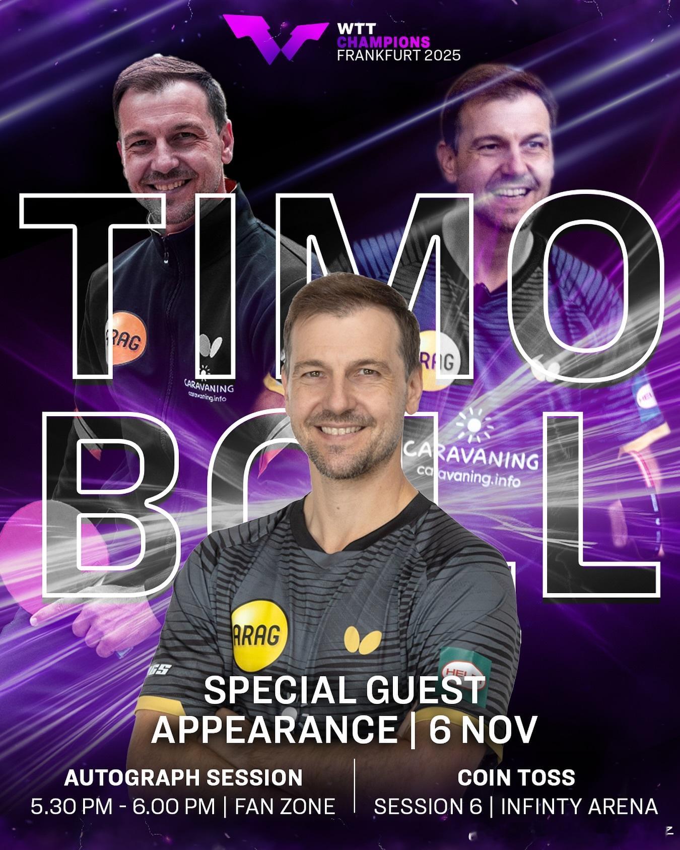 波尔11月6日将作为惊喜嘉宾来到2055WTT法兰克福冠军赛🤩包括粉丝见面会和挑边仪式