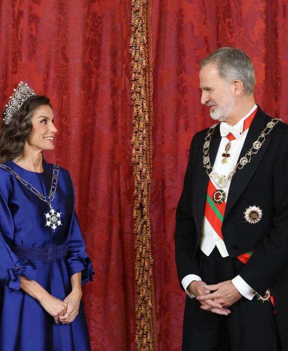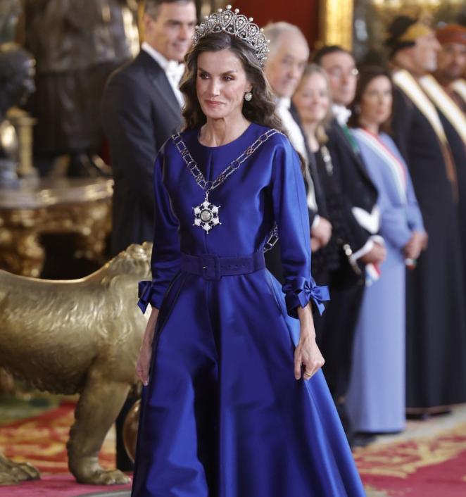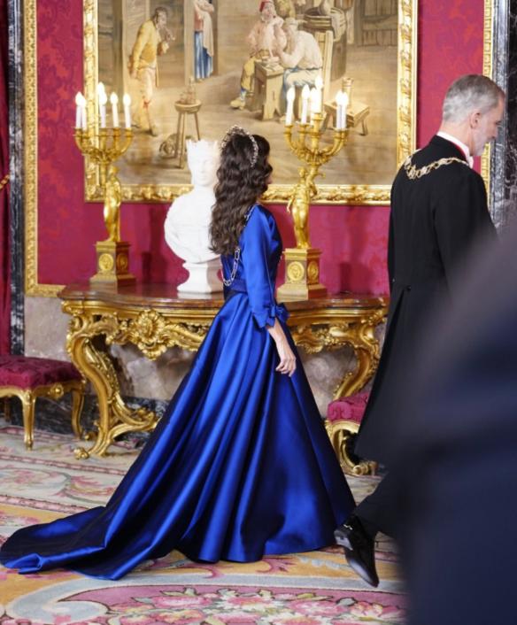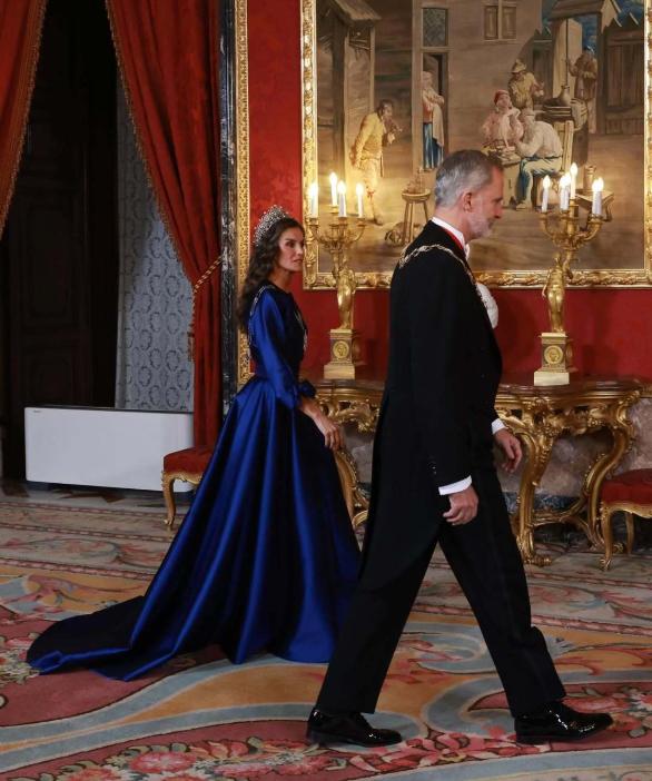 西班牙王后访华前马德里王宫出席晚宴,穿宝石蓝礼服戴皇冠,背影照气质卓绝!11月4日莱蒂齐亚盛装亮相王室晚宴,欢迎远道而来的贵客阿曼苏丹海赛姆。 当天的她穿戴很隆重,一袭宝石蓝礼服裙尽显高贵典雅,还有代表皇后的皇冠戴在波浪卷发上,也为她增彩不少,全身造型太养眼,就是不能看正脸,因为脸上历经岁月的痕迹藏不住,背影照却气质出众又绝美,宛如高贵的女王! 据悉,她下周9日~13日要访华,不知道会穿什么款式的衣服抵达北京机场?毕竟西班牙王后出身主持人,审美与品味一直在线,让人很期待哟!