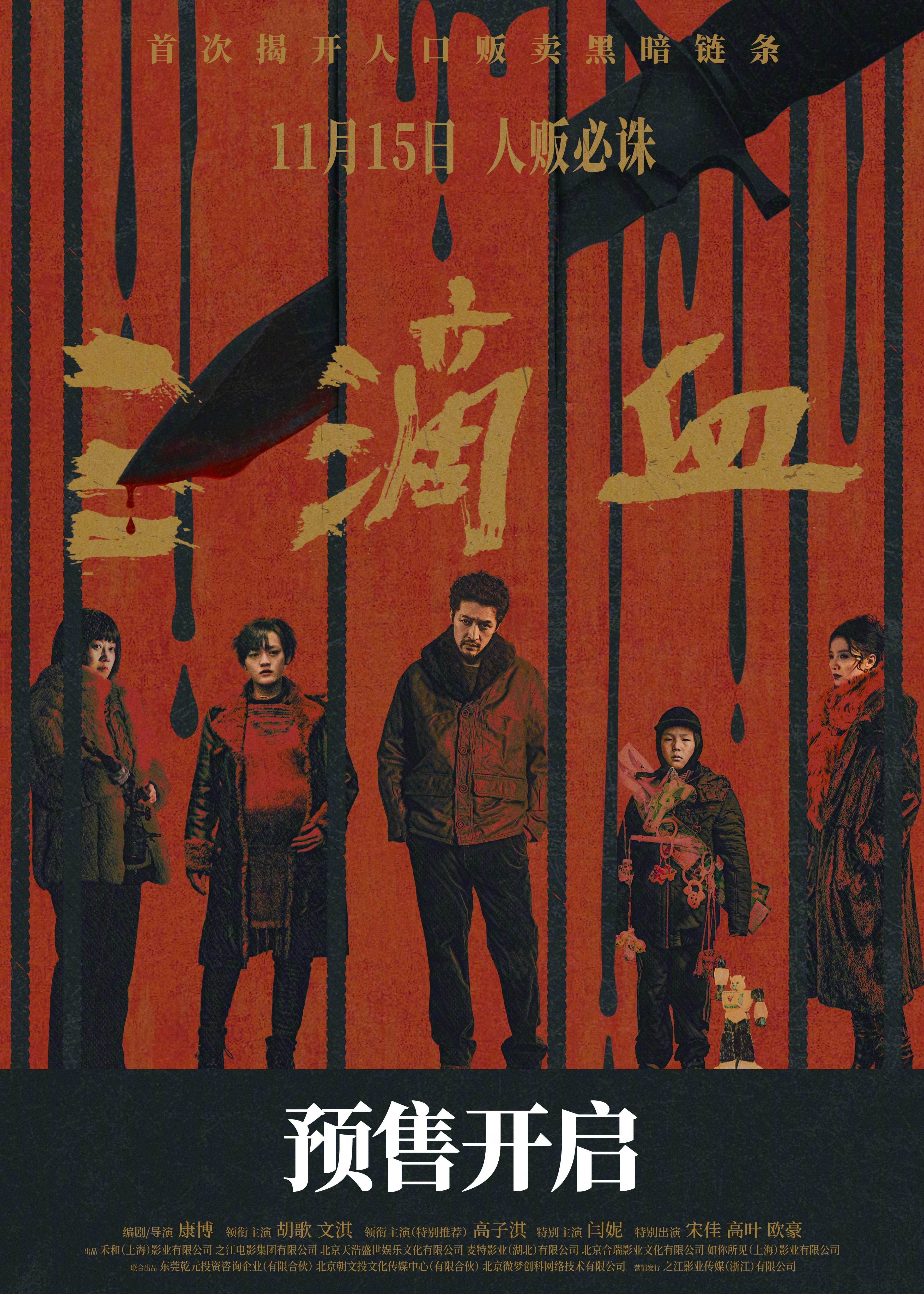 电影三滴血预售开启胡歌解读新片三滴血电影《三滴血》开启预售并释出新海报,一把小刀划开背景,众角色神情各异。影片由导演康博编剧、执导,胡歌、文淇 、高子淇领衔主演,闫妮特别主演、宋佳、高叶、欧豪特别出演,将于11月15日上映。电影三滴血