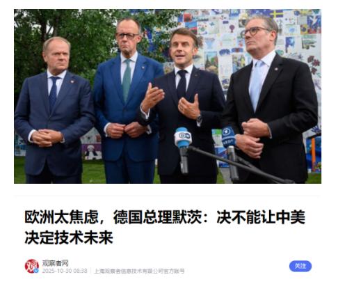不得不说,欧洲这几位 “大聪明” 喊口号的本事是真到家了,刚赶上中美达成史诗级协议稳住世界新秩序,那边就急着跳出来喊 “不能让中美主导科技发展”,听着倒是雄心壮志,可真要较真儿问一句:除了耍嘴皮子,欧洲现在还有啥能拿得出手的硬家伙?答案恐怕得让他们自己都脸红。 别光说场面话,拿数据出来遛遛就知道虚实。 2024 年有个全球科技品牌价值 100 强的榜单,里头欧洲才占了 9 家,前五十强里更是只捞着 3 个位置,反观美国有 26 家,咱们中国也有 13 家,单看这数量差距就够刺眼的。 更要命的是,那些真正能决定科技话语权的前沿领域,欧洲早就跟不上趟了。 就说人工智能吧,欧盟的私人投资才 450 亿美元,连美国的零头都不够。 美国砸了 3000 亿,咱们中国也投了 910 亿,这点钱别说追差距,能保住现有阵地就不错了。 有人可能会说,欧洲不是有顶尖的科研机构吗?这话没说错,30 多所世界前百的大学,还有欧洲核子研究中心这种狠角色,科研底子确实厚实。 可问题出在 “转化” 上,实验室里的成果再多,变不成市场上的硬实力也是白搭。 咱们中国的华为,榜单上排第 15,可实打实握着 5G 和芯片研发的硬功夫,成长性肉眼可见; 欧洲呢?喊了好几年要搞 “数字主权”,结果连个能跟中美科技巨头掰手腕的企业都找不出来,科研和产业彻底脱了节,这不就是典型的 “纸上谈兵”? 再往深了说,欧洲连研发的钱都没花在刀刃上。2023 年欧盟的研发强度才 2.2%,不光比美国的 3.5% 低一大截,连咱们中国的 2.65% 都比不上。 更荒唐的是,这些有限的钱还大多砸在了汽车这种中等技术领域,至于人工智能、量子计算、区块链这些决定未来的前沿赛道,投入少得可怜。 这就好比别人都在练内功攒大招,欧洲还在琢磨怎么把旧兵器擦得更亮,等反应过来的时候,早就被甩开了不止一个身位。 最尴尬的是,欧洲现在连不少关键技术的 “饭碗” 都端不稳。 就说芯片吧,以前还能靠荷兰 ASML 撑撑场面,可现在高端光刻机的核心技术被卡着脖子,自己的产能也跟不上; 新能源领域喊了半天转型,结果电池技术和产业链还得依赖中国的供应。 前段时间欧盟想搞芯片法案自救,可雷声大雨点小,钱没凑够不说,各国还在为利益分配吵来吵去,这种散沙一盘的状态,怎么跟中美这种能集中力量办大事的对手拼? 其实欧洲不是没风光过,工业革命那会儿也是引领全球的主儿,可架不住后来路子走偏了。 一边舍不得放弃传统产业的舒适区,一边又没魄力在新赛道上重仓投入,加上欧盟内部几十个国家各有各的小算盘,连个统一的科技战略都推不动,光靠喊口号能管用吗? 中美现在能在科技上站得住脚,靠的是真金白银的投入、长期的战略规划,还有把科研成果变成产业实力的硬能力,这些恰恰是欧洲现在最缺的。 说白了,现在的欧洲就是 “心有余而力不足”。 想保住科技话语权的想法没错,但得先看看自己手里的牌:能打的企业没几家,前沿技术差距越拉越大,研发投入既不够多也不够精准,连内部都没法拧成一股绳。 与其急着跳出来喊口号,不如先把自己的科技底子补扎实了,不然再响亮的表态,也只能是让人看笑话的 “嘴炮”。 时代早不是靠嗓门大小说话了,得有真家伙才行,这一点,欧洲真该好好琢磨琢磨。