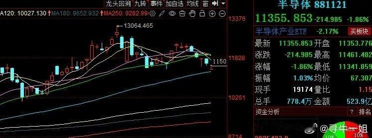 在早盘给大家分析半导体中写到:“近期虽然半导体有所调整,但并没有去实实在在的回踩箱体下轨和60均线附近的支撑,所以短期还有下跌空间”,从今天半导体下跌走势来看是符合预期的。
