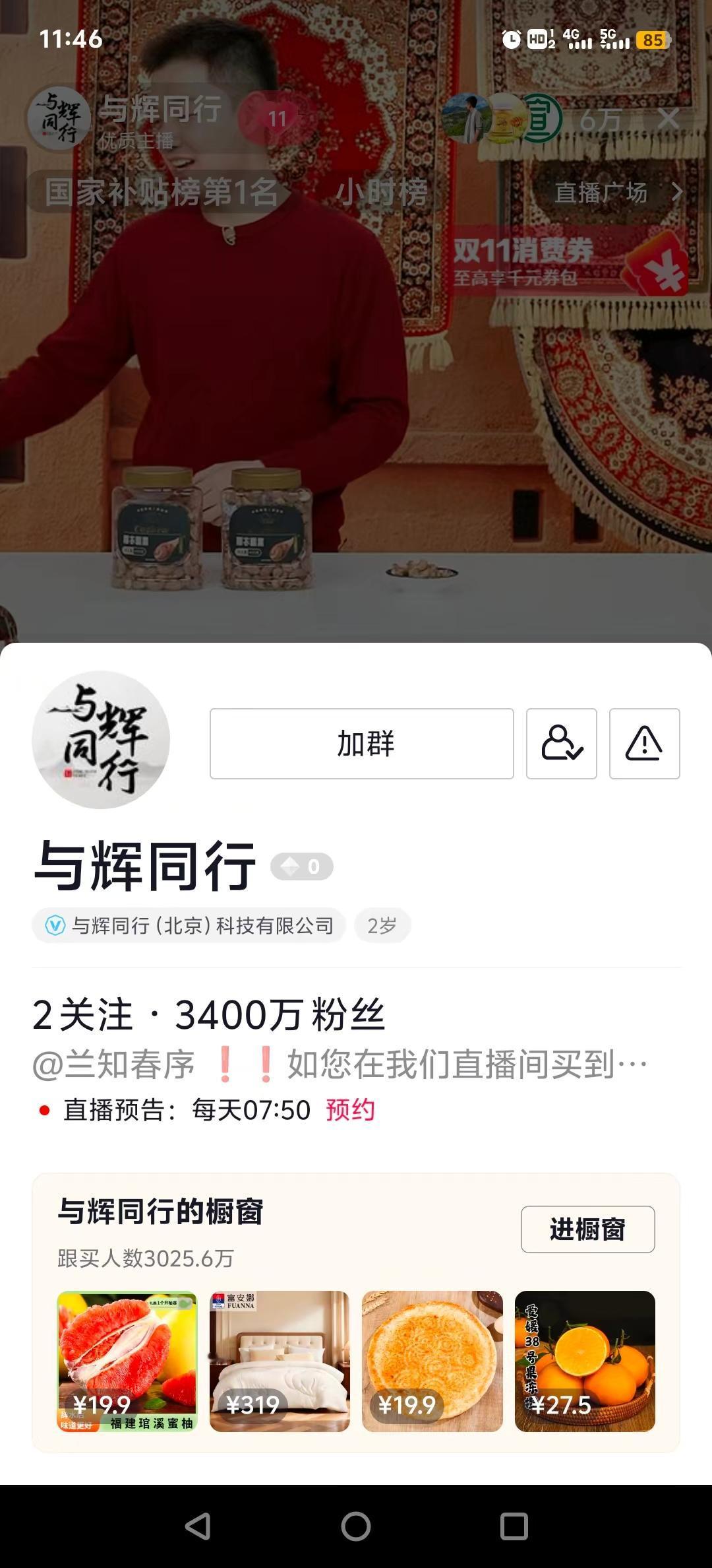 恭喜贺喜, 与辉同行粉丝已经达到了3400万, 这一百万粉丝涨的好快啊, 才多久啊, 就又涨了一百万了。 还记得两个直播间粉丝狭路相逢是什么时候? 是2800万的时候吗? 擦肩而过的日子仿佛还在昨日, 没想到一眨眼间与辉同行粉丝领先快600万了, 意外吗?还是惊喜? 一个成立不到两年的账号, 粉丝数遥遥领先, 而一个成立了四年的上市公司账号, 粉丝数量天天下跌。 原因在哪里? 这是消费者对直播间的肯定。 一个公司人气大跌, 销量更是不尽人意。 “真爱粉”们说粉丝数量下跌是抖音平台故意为之, 是平台对董宇辉的偏爱。 他们的销量不好, 原因是粉丝都去自建房下单。 8月份老板说自建房每天销售业绩达到了一千万, 会员已经到了三十万。 呵呵呵呵, 八月份的话我们还记忆犹新, 前天的股东大会, 老人又说现在自建房业绩每天四五百万, 最终目标是1000万。 哦,一千万是目标啊, 老板又在画饼, 这目标什么时候才能完成? 去年会员差不多就是20万, 老板说的30万会员在哪里? 其中这二十多万还有多少是免费送的? 老板一张嘴, 就是哄人的鬼。 事实是什么不重要, 故事讲的好听就可以。 套一个是一个, 韭菜割一波算一波。 哎,网络是有记忆的, 有些人就是人老实话不多。 2800万粉丝还能稳定几天? 与辉同行下一个一百万涨粉又需要多久? 大家拭目以待吧! 散会! 董宇辉
