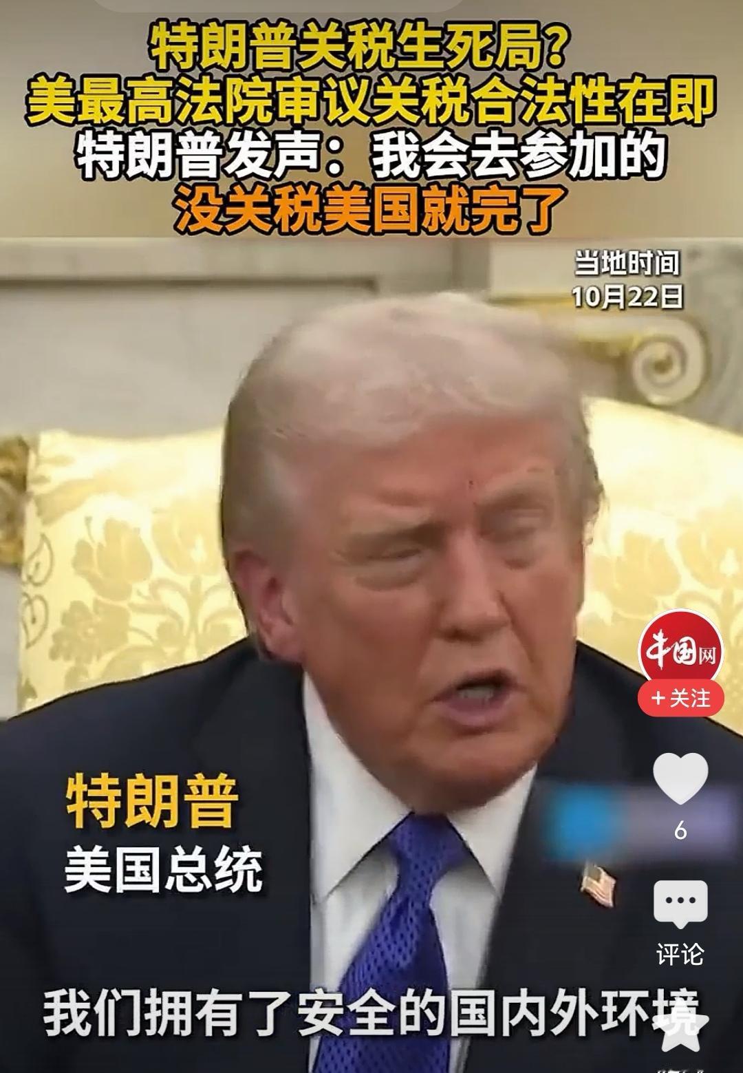 【特朗普被审查】 让其灭亡必先让其疯狂!报应终于来了。 美国7家大型企业联合10个州将特朗普告上法庭,理由是特朗普擅自越权策划和推动在全球加收10%的“基准关税”。 美国最高法院受理此案,将于2025年11月5日听取合法性辩论,预计将于明年6月份前做出判决。 特朗普当然不服,认为身为总统有权做出判决,指出打好“经济战”等同于打好“战争仗”,所做所为皆是为了美国强大,如果赢了将成为世界上最富有、最安全的国家,会更加遥遥领先。 仔细揣摩他的言辞,似乎正确,但在他的操纵下,美国一些企业却叫苦连天,在被反制“踢到钢板”的情况下,9月底美国公司已支付了近900亿美元备受争议的IEEPA关税。 针对此次被告,特朗普此前也表示有“义务”去法庭接受审理,后来又宣布不会到法院接受辩论,理由是不想分散对判决重要性的注意力。其言外之意,身为总统有大权在握,去了会影响公平判决。 然而特朗普政府白宫方面背后搞起了小动作,极力挽救。一方面就违法一事提出上诉来拖延时间,称这一政策已帮助了美国众多企业签订了贸易合同,也拯救了许多失业人员。 另一方面在搞“擦边”,提前豁免了几十种商品关税,签行政令调整关税政策,还扩大《贸易扩展法》适用范围,力求把损失降到最低。 此案的聚焦点在于特朗普是不是在“瞎搞”,国内贸易逆差构不构成“国际紧急”情况,如果构成了总统有权实施紧急应对措施,不构成将不能适用于《国际紧急经济权力法》,况且本国关税等有关职责在国会,特朗普的行为是越权违法。从目前投票看,超过半数法院人员认为违法。 如果美国最高法院判决特朗普的行为真的违法,将会废除和撤销以前所制定的政策,收缴退还所有关税所得,包括中国在内的各国违法所得,这笔款项巨大,无疑对特朗普政府来说打击很大。 如果特朗普上诉成功,也将会引起政治上和国际经济上双重考验,一方面特朗普的权力将会增大,总统有擅自决定经济封杀大权,另一方面凭着特朗普的性格,会出台更多关税政策,逐渐影响世界经济格局。 不过按照以往美国审查总统的惯例,包括特朗普状告美国政府、特朗普性侵案等等,都没有实行刚硬有力措施,一直在打“口水”战中徘徊,谁胜谁败只能交给“时间”拖延,最终拖的无影无踪。 这就是美国,一个貌似公平,又言而无信不讲理的国家。