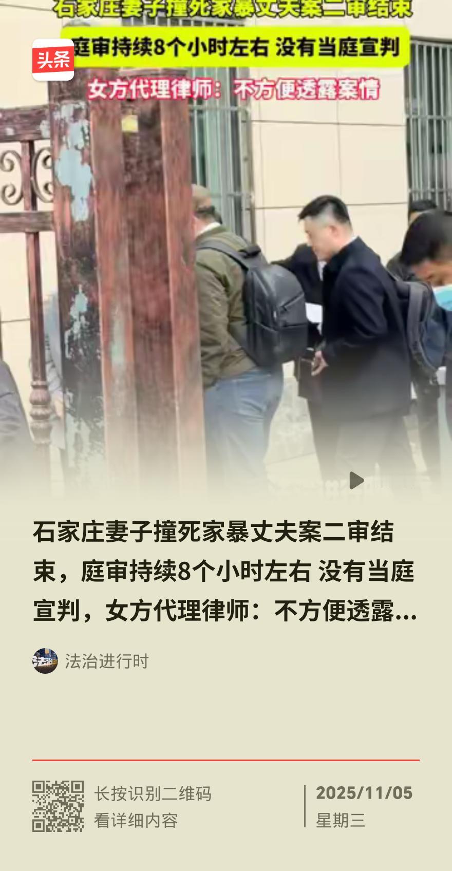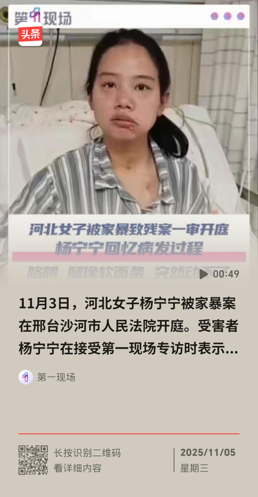 快讯:河北家暴案开庭!丈夫掐脖致妻瘫痪还狡辩 2025年11月3日,河北沙河法院开审杨女士被丈夫周某某掐脖致瘫案,未当庭宣判。 两人闪婚15年,周某某家暴不断,扇流产、烫烟头、伤孩子,2022年酒后掐妻撞头,致其脑梗死瘫痪,还拖延转院。庭审上周某某辩称“仅推脖子”“正当防卫”,杨女士崩溃大哭。 杨女士靠父母照顾,子女处境难,网友为其发声。这家暴哪是“家务事”,分明是把人往绝路推!家暴 家暴违法行为 家暴妻女 家暴致死