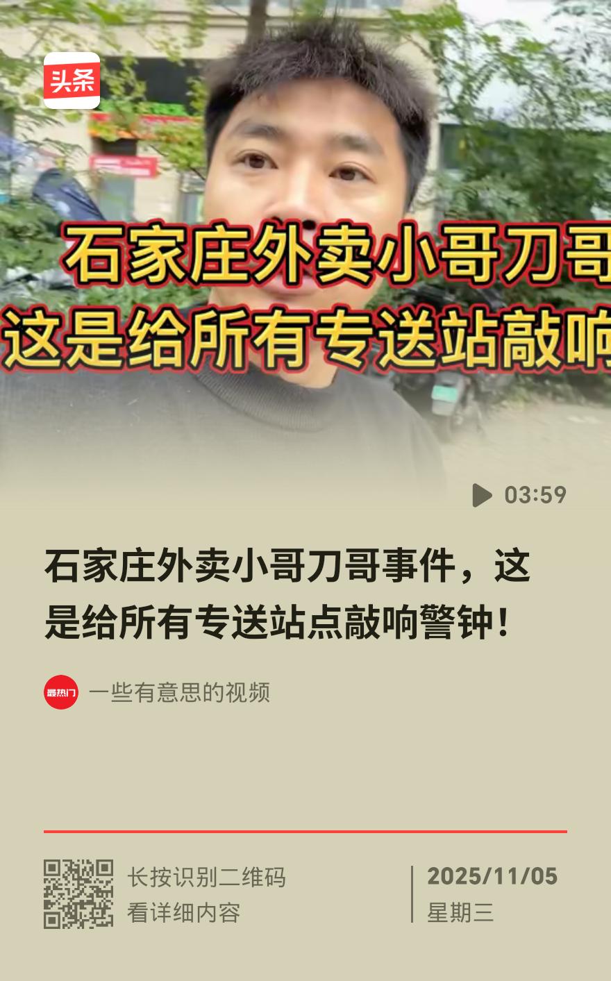 石家庄外卖小哥事件引关注!遇事别冲动,这些提醒要记牢 最近石家庄外卖小哥的事儿,让不少人看了心里不是滋味。目前网上讨论得挺热闹,各种猜测都有,但大伙儿得拎清楚——死者为大,现在所有没经过证实的说法都不算数,最终结论还得等警方正式通报,这是对事件各方最基本的尊重。 其实想想,外卖小哥这行真不容易。天没亮就骑着车往各个小区跑,早饭常常是在等红灯时啃个包子,遇到下雨下雪,雨衣裹得再紧也难免淋湿。他们拼了命多接单,无非是想多挣点钱,给家里交房租、给孩子买奶粉、给老人攒医药费,每一分收入都连着一家子的生计。要是因为一点小事跟人赌气、冲动行事,最后受影响的还是自己和家人,多不值啊! 再说说管理岗位的人,能当上领导肯定有自己的能力,但手里的权力更该多为底层员工着想。比如遇到恶劣天气,能不能适当放宽点送餐时效?小哥偶尔迟到,先问问是不是路上出了意外,别上来就罚款。之前就听说有个外卖站点,夏天给小哥发防暑降温包,冬天煮姜茶,小哥干活都有劲儿,还总跟人夸领导贴心。多给点实在的关怀,员工心里暖,工作也能更顺心。 现在网上还在讨论,但真心希望大家别再传没根据的猜测了,别给家属添额外的负担。等警方通报出来,真相自然会清楚。 这事儿也给所有人提了个醒:出门在外都是为了求财,遇事多份包容,少点冲动,别让一时的气话、一时的较劲,毁了本该安稳的日子。外卖员光荣事件 外卖隐患 外卖危害