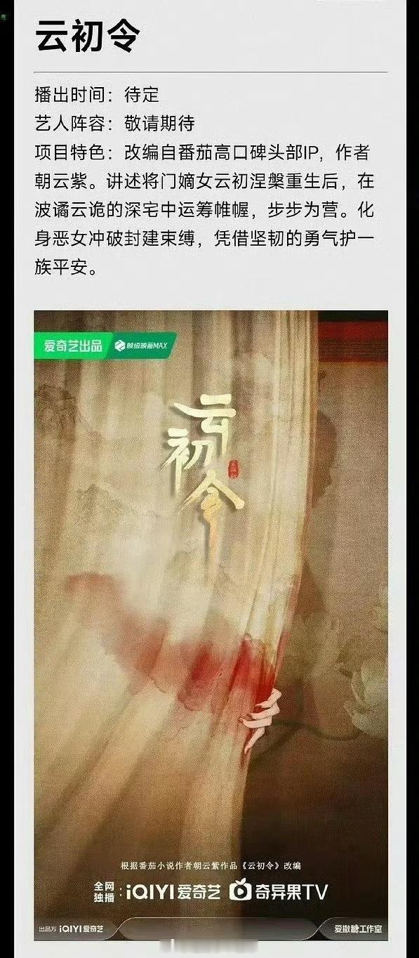🍉 云初令女主是虞书欣,你期待吗[好喜欢]