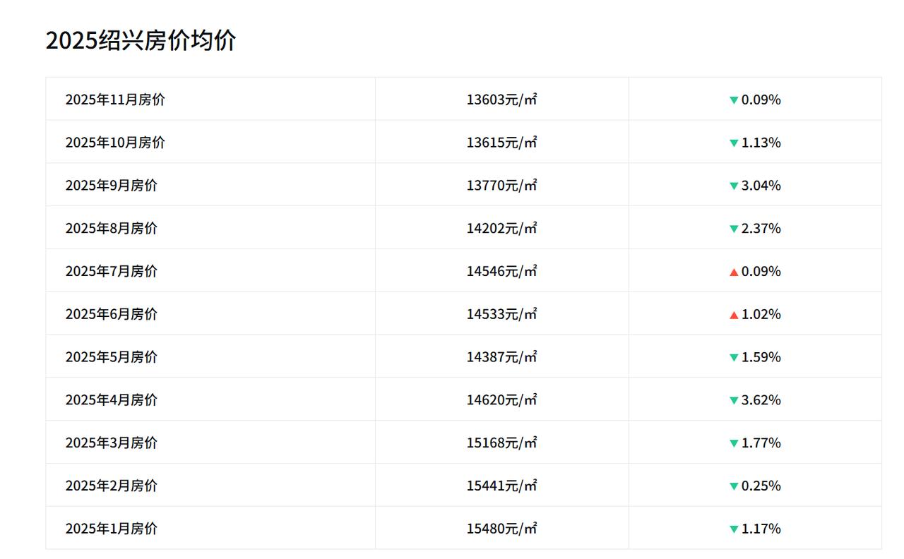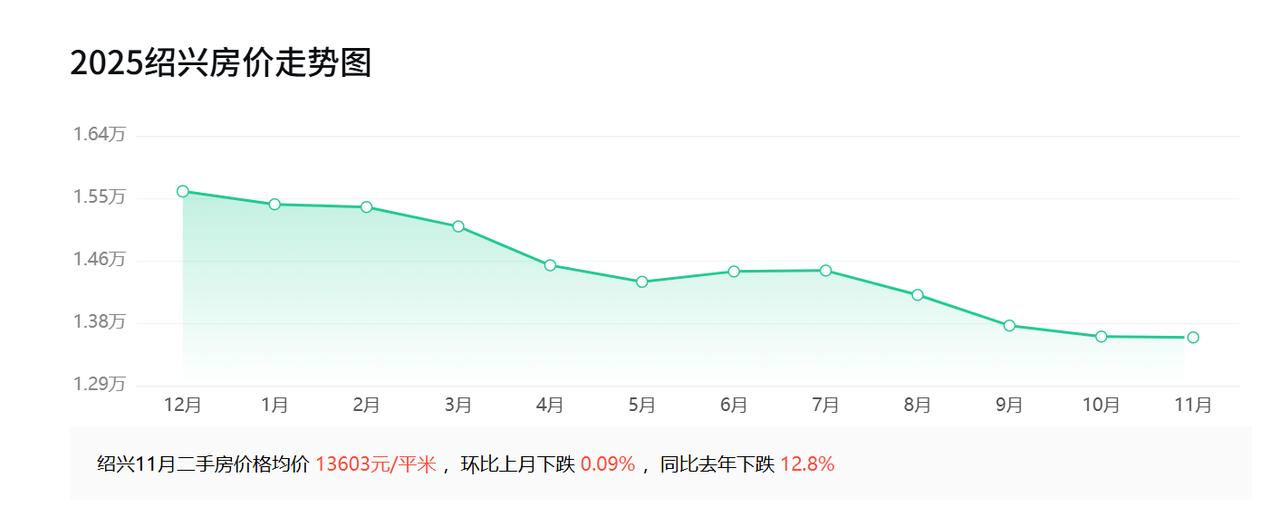 缓缓回落! 2015年10月,绍兴房价均价11222元; 2016年10月,绍兴房价均价9067元; 2017年10月,绍兴房价均价11433元; 2018年10月,绍兴房价均价14084元; 2019年10月,绍兴房价均价15657元; 2020年10月,绍兴房价均价17317元; 2021年10月,绍兴房价均价17979元; 2022年10月,绍兴房价均价18300元; 2023年10月,绍兴房价均价17236元; 2024年10月,绍兴房价均价15362元; 2025年10月,绍兴房价均价13615元。   绍兴这十年的房价,像坐了一轮过山车,从一万出头爬升到接近两万,然后又缓缓回落。   2015-2016年,受当时棚改政策调整和库存压力影响,市场信心不足,这一年算是绍兴楼市的“蹲下起跳”,不少人错过了抄底机会;   2017-2021年,受棚改货币化安置+长三角一体化概念升温,投资需求集中释放。五年间房价从11433元飙升到17979元,年均涨幅超10%。2021年冲至历史峰值19052元,镜湖新区等热门板块领涨;   2022-2023年,政策收紧后市场进入去库存周期,二手房挂牌量激增,越城区和镜湖房价差缩小至1.8%,核心区抗跌性凸显;   2025年10月均价降至13615元,较2021年高点累计跌幅24%,价格回落到2018年水平。   房价的根基之一是地价。2025年1-10月,绍兴的土地成交楼面价同比下跌5.16%,住宅用地成交面积更是大幅下降近60%。   绍兴楼市的十年,从“狂热”到“冷静”,也是大多数二线城市楼市发展的缩影,将来房子的价值,终会回归它所能创造的生活本身。