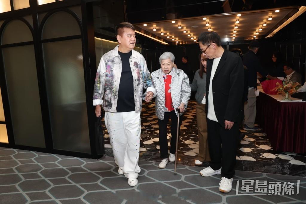 《2025 EYT好友会联欢晚会》今晚(4日)在尖东举行,陈百祥与太太黄杏秀、陈欣健、寇鸿萍、林嘉华与太太刘宝珍、吴雨、余慕莲、胡枫与罗兰等都有出席,余慕莲由EYT同事推轮椅接送到场,身型较之前复胖了些,提到她化妆出席,她精灵表示,“当然啦,你们会影相呀!”她指健康较之前好,不过因天气影响有几声咳,不少EYT同事见到她都一齐影合照,成为焦点。至于胡枫亦精灵地摆甫士影相,而月前曾跌倒的罗兰,则由陈百祥及黄杏秀陪伴到场,陈百祥更全程扶着她到舞台影大合照,步伐有点蹒跚。