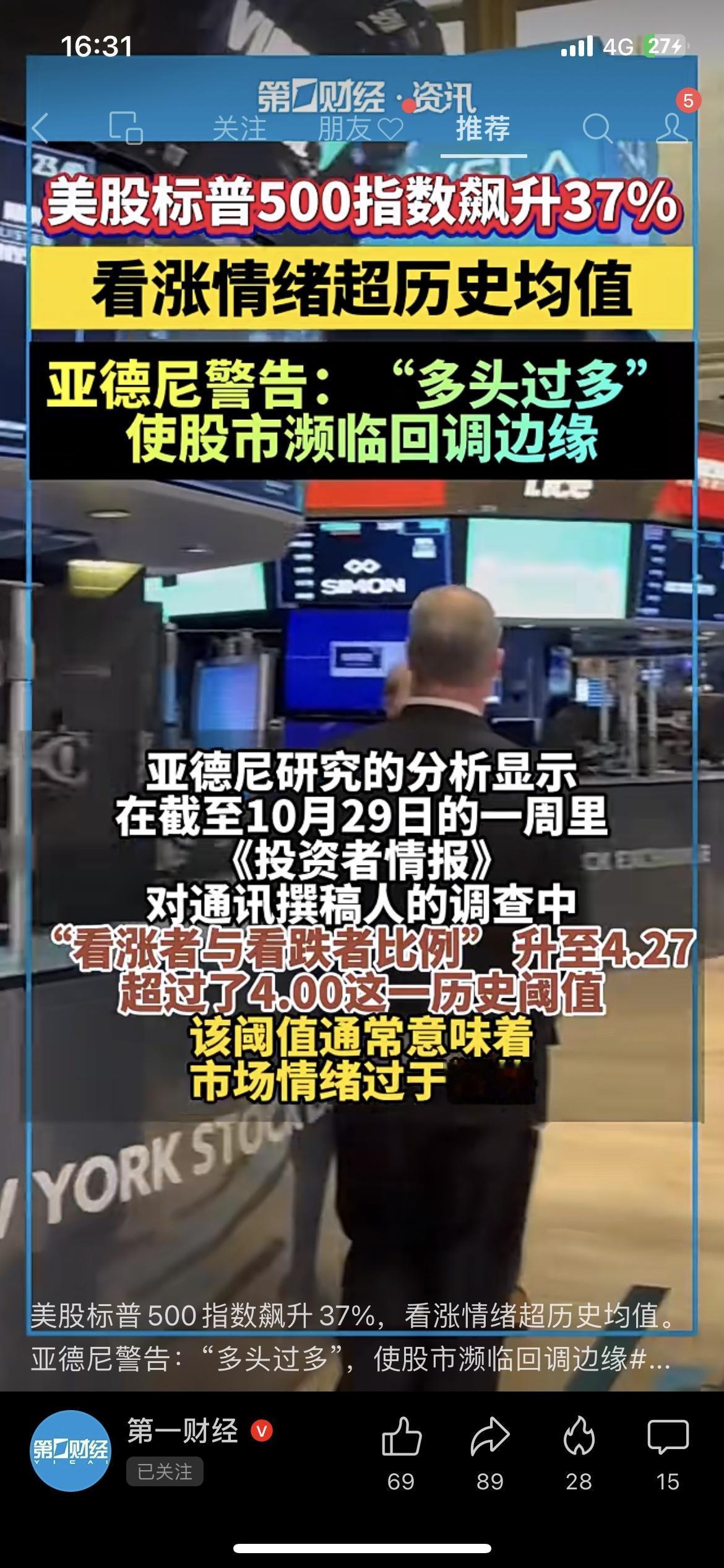 美股涨疯了!37%涨幅百年只见过5次,但机构喊:别追了,要崩! 家人们,美股这波操作我是看傻了——标普500从4月到现在,直接涨了37%!这涨幅1950年到现在才出现5回,比中彩票还少见。 但现在有人泼冷水了:最近7周里,美股看涨的人5次超过历史平均;甚至有个“看涨/看跌比例”飙到4.27,超过4.0的“疯牛阈值”了!连机构都警告:“现在多头太多了,股市马上要回调了”。 有意思的是,往年11月都是美股涨得最猛的月份,但这次涨太狠了,会不会反过来跌? 你们觉得美股是接着疯,还是下周就崩?赌一包辣条,评论区猜!美股盘后重挫 美股盘后行情