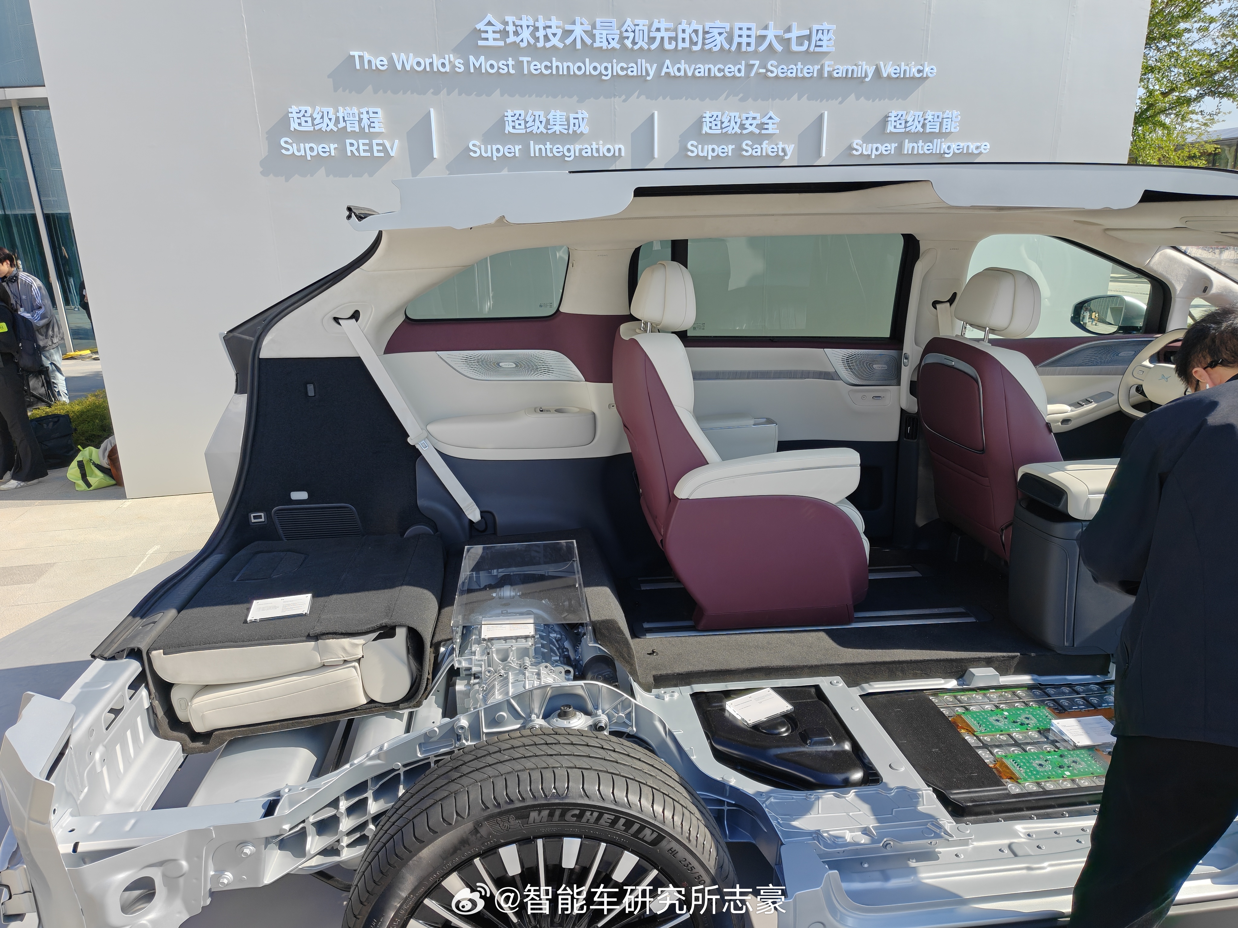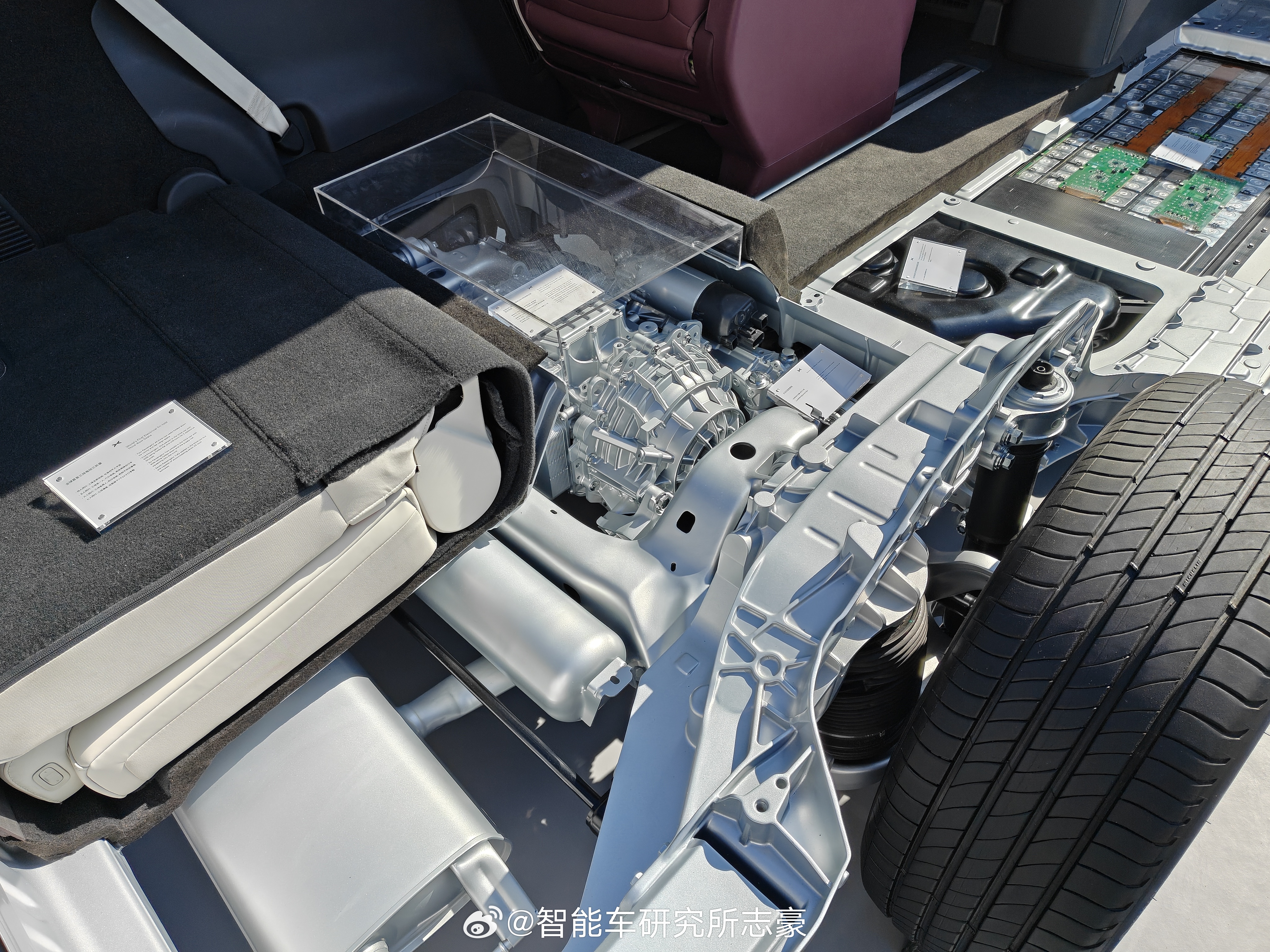 但有一说一,这么大电池,后悬挂这么多配置硬件:后轮电机,后轮转向,空气悬挂,cdc,地台还可以这么低,三排坐姿还可以翻折完全收纳进地板里,空间利用布局这块的确是厉害。 ​​​