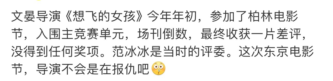 爆料总结:导演文晏是东京电影节评委,不让fbb二封影后,为了报仇柏林电影节fbb