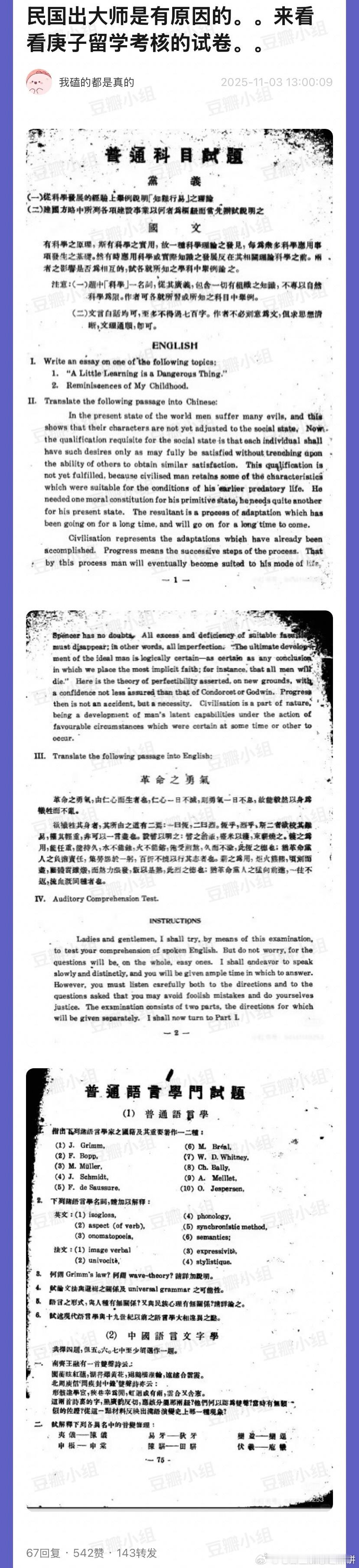 哇民国时期的考试难度好高,当时留英公费生的考试内容包括国文、英语、中国通史、法语