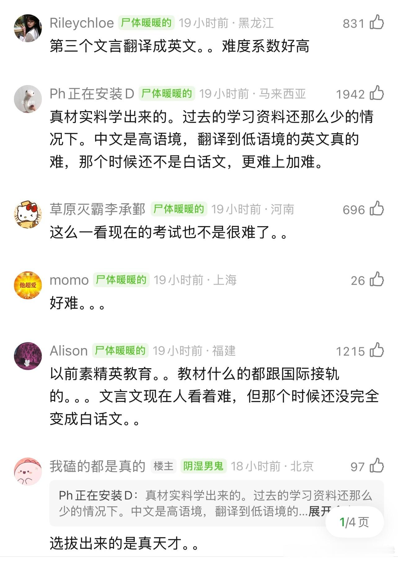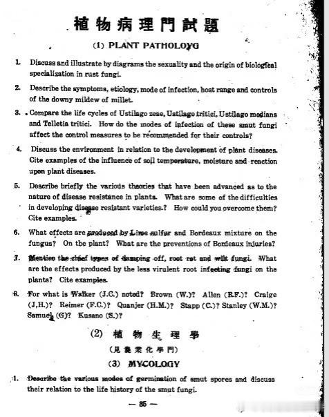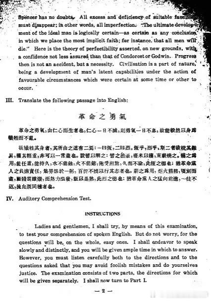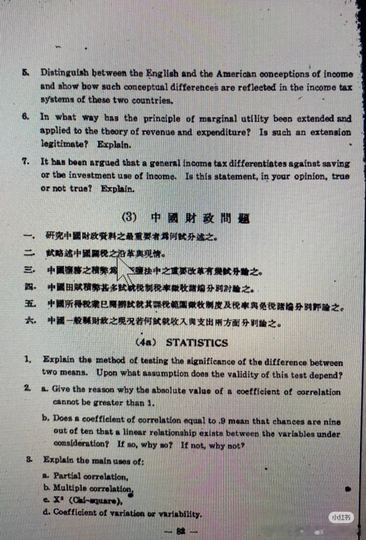 哇民国时期的考试难度好高,当时留英公费生的考试内容包括国文、英语、中国通史、法语、德语、西洋通史、希腊罗马史、经济学、民法、刑法、国际私法、植物学、医学等等,试题范围很广,半数以上都采用英文的形式(而且西南联大的微积分考卷也是英文) ​​​