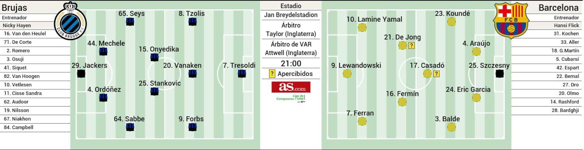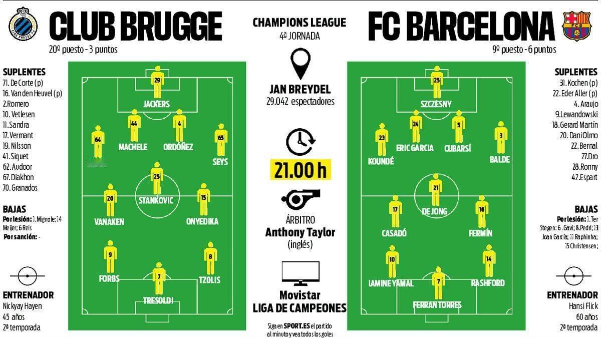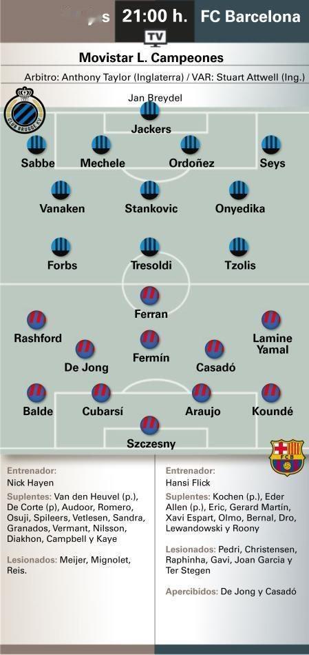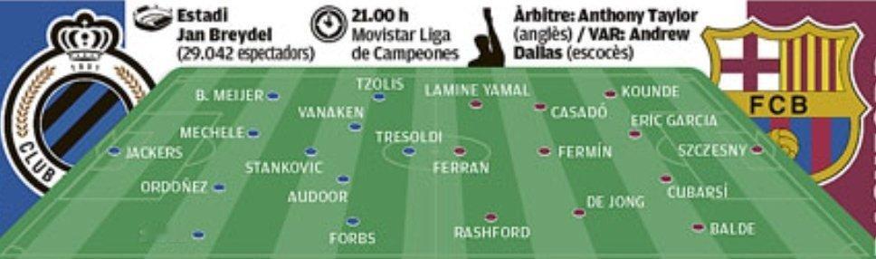 媒体预测巴萨对阵布鲁日首发阵容。🔥🔥🔥🔥布鲁日vs巴萨热点现场欧冠联赛