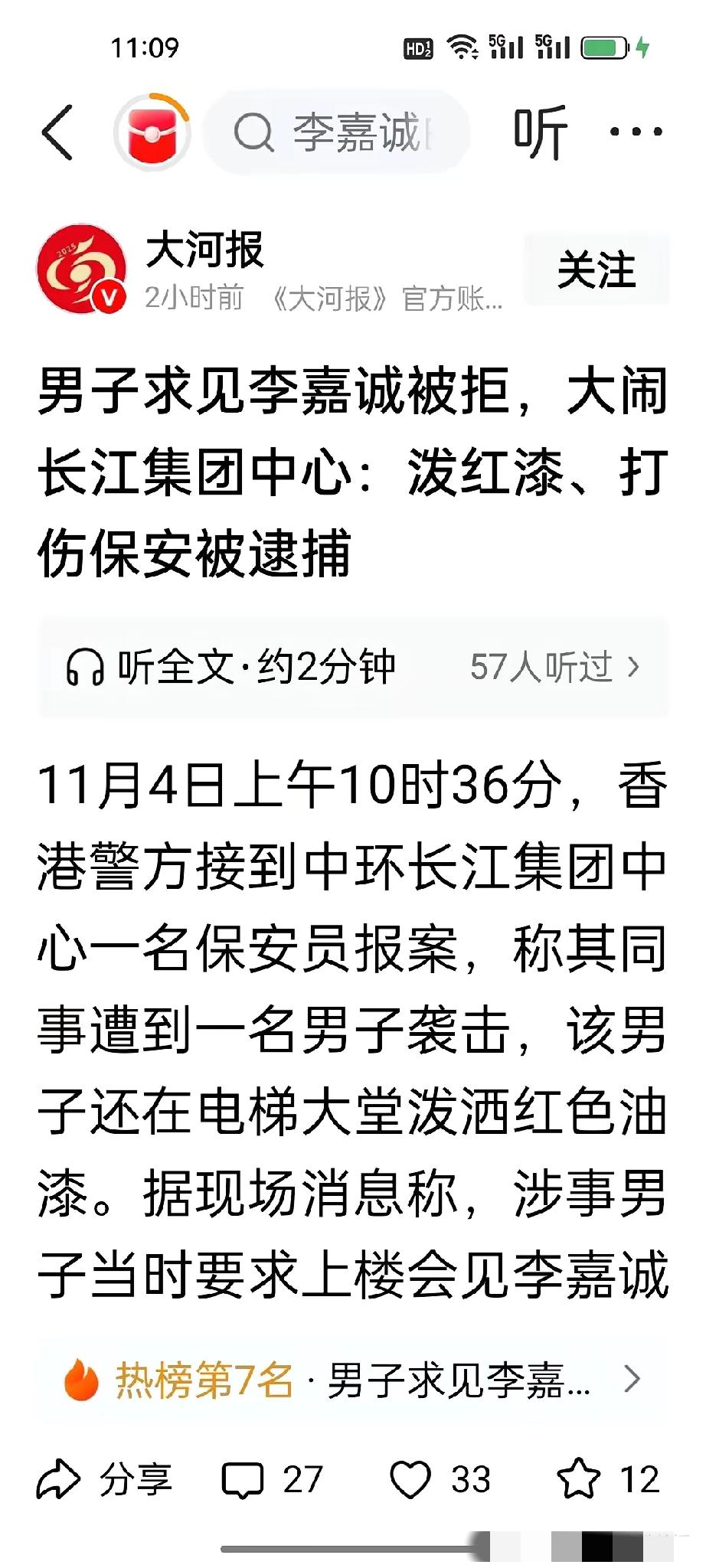 李嘉诚这波“双重尴尬”,简直是把资本与本土的距离摆到了明面上!全运会火炬在大湾区传递,香港四大家族去了三家,霍震霆、李家诚都亲自上阵,澳门何家姐妹也接力了,唯独李嘉诚的两个儿子彻底隐身,这缺席哪是偶然,分明是人心的晴雨表。 更巧的是,火炬传递刚过,就有男子带着红油漆大闹长江集团中心,非要见李嘉诚,还打伤了保安 。虽说男子疑似精神有异,之前也滋扰过,但大家第一反应还是往李家身上联想,这可不就是积怨的体现吗? 说到底还是卖港口那事儿闹的,放着中资不考虑,非要卖给美国贝莱德,说是市场行为,可谁都看得到背后的敏感。商人逐利没错,但忘了根在哪,公众自然不买账。火炬传递的缺位是体面的疏远,红油漆泼的是直白的不满。 你们觉得,资本真能彻底脱离本土情感吗?李家想挽回口碑还来得及吗?评论区聊聊~