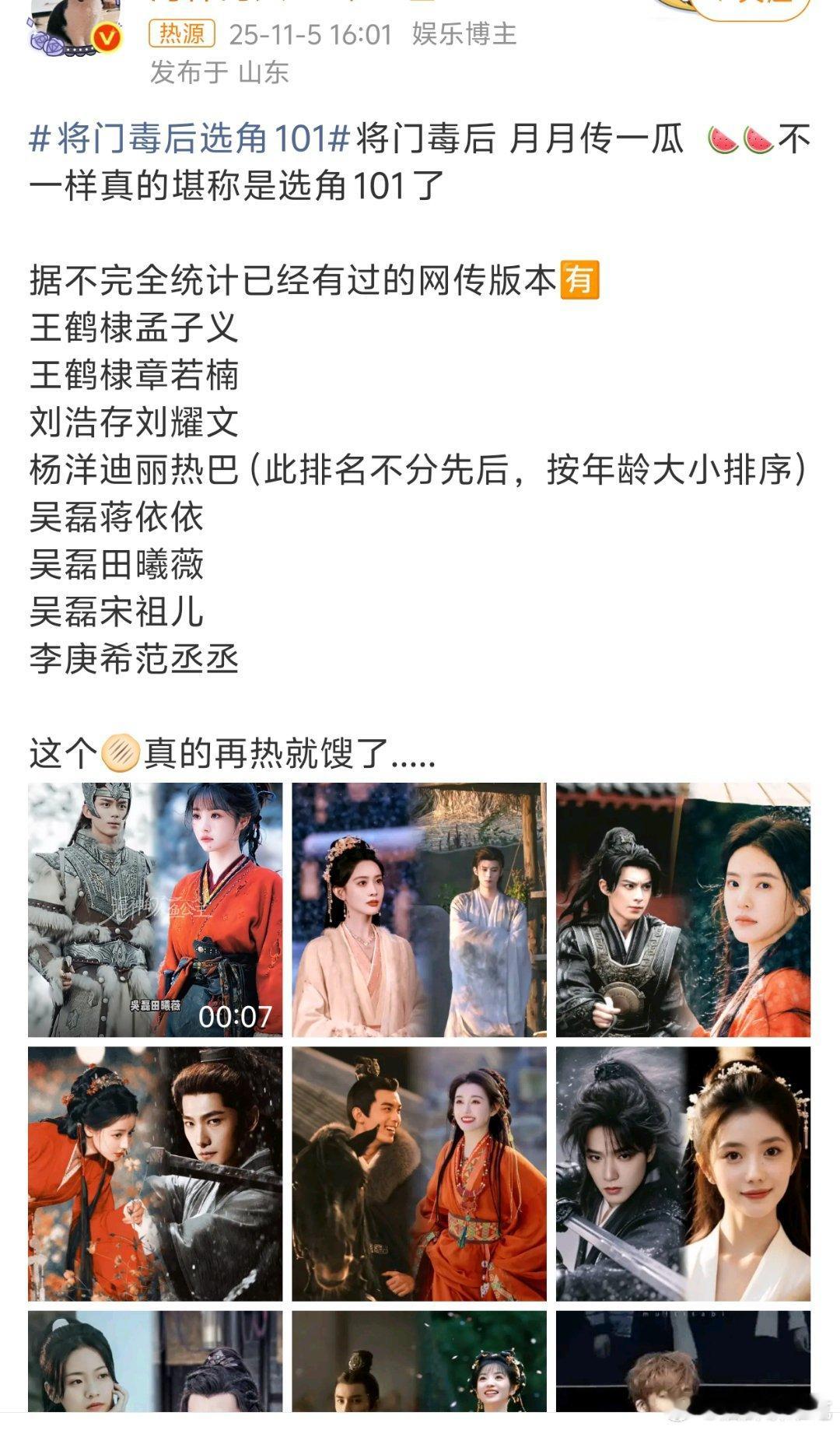 将门毒后传过的人远不止这些,舔饼还是溜人其实还是很好分辨的,有些确实是被溜,但有些是纯舔[无聊]将门毒后选角101