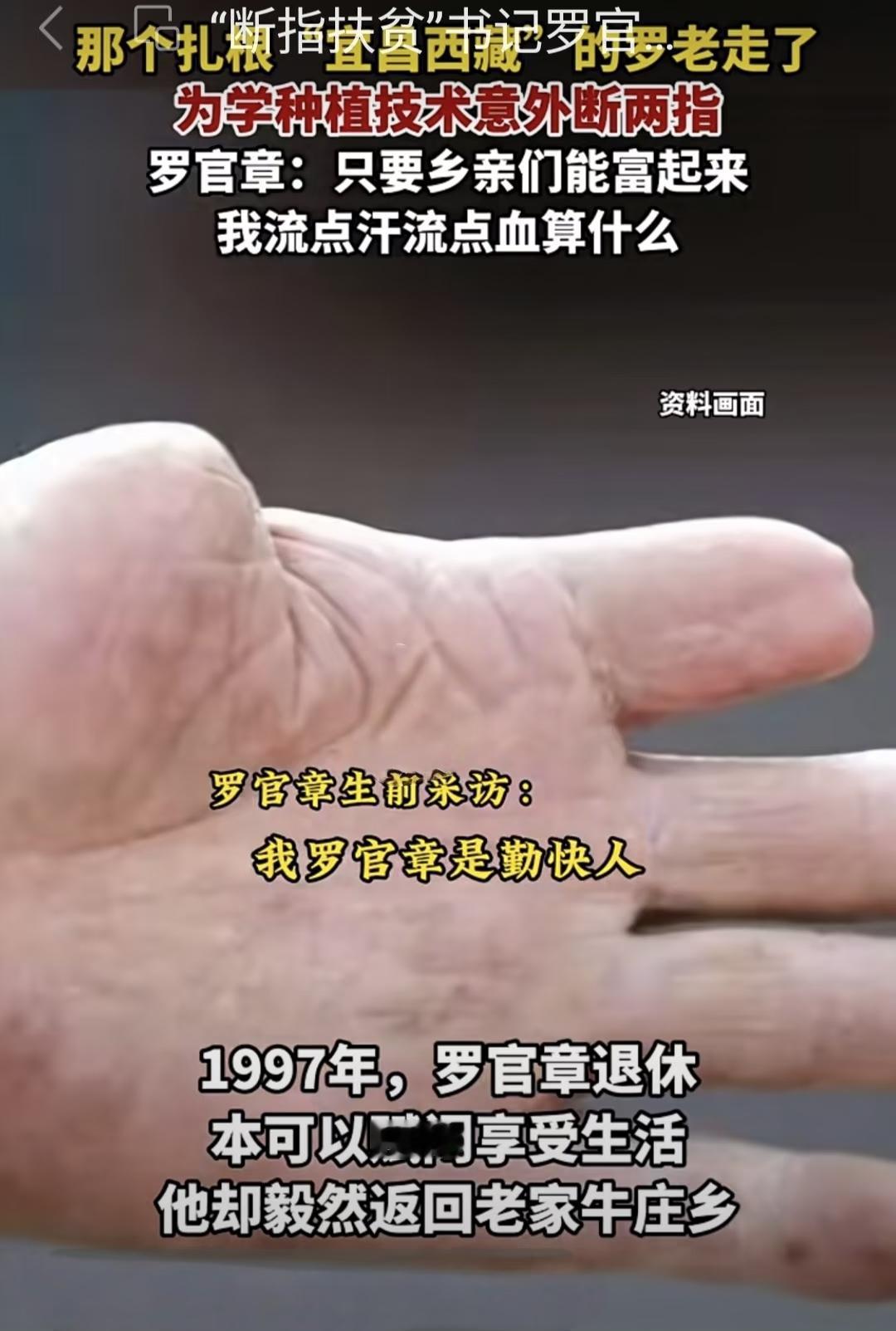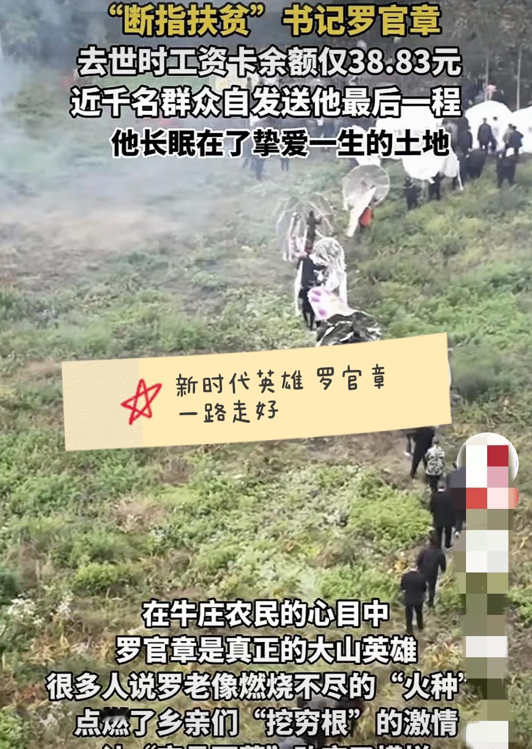 青山为证,民碑为证‼️ 这才是人民的好官啊[祈祷][祈祷] 88岁的扶贫书记【罗官章】走了 千民群众,自发为他送别! 他始终把“让乡亲们过上好日子” 放在心上 自己节约到极致, 一件衣服竟然穿了大半辈子![可怜] 给乡亲们掏钱毫不犹豫! 为了让乡亲们致富 他学技术 练技术 授技术 还因此不幸断了手指! 扶贫49年! 之后退休工资7000,本可以安享晚年 却选择返乡扶贫 生前还交代女儿, 他去世后不能收乡亲的份子钱 一人一山一辈子! 老书记,一路走好![祈祷]