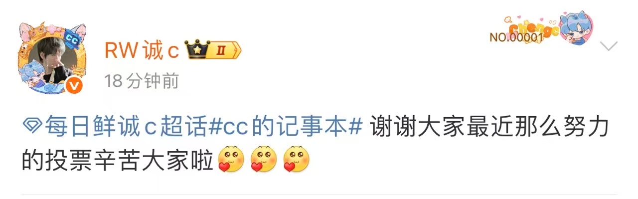 诚c感谢粉丝为自己投票说啥感谢呀,这都是粉丝宝宝们的爱呀[老师夸夸]