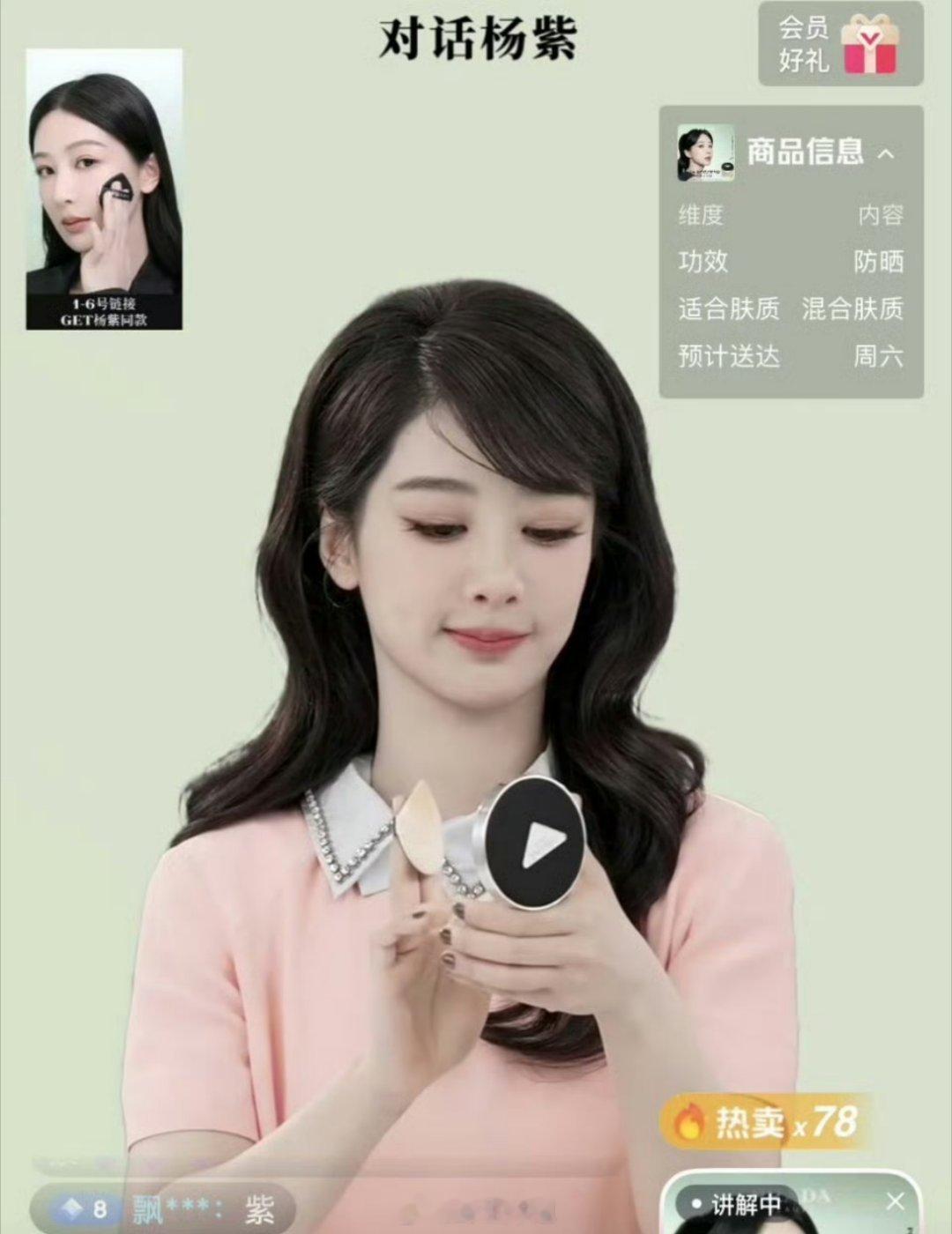 杨紫今日份直播截图来了,今天的头发有点像假发呢,主打的就是温婉贤淑风格,搭配上粉色上衣,今日份的杨紫,你爱了不?