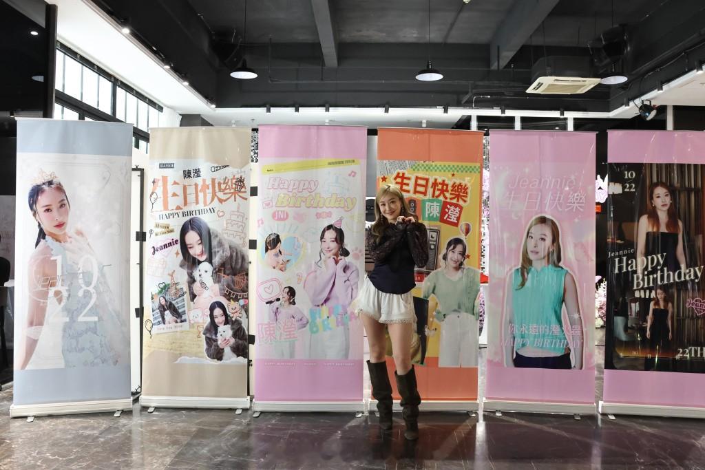 一班fans好有心思,将会场布置得好漂亮,有不少Jeannie肖象的打卡位,又扮寿星公出场为Jeannie贺寿,他们更送上一份别出心裁的礼物给Jeannie,就是一部摄影机摆设,围住摄影机之菲林,就是Jeannie所拍过的剧集剧照,他们希望偶像可以拍多些好剧,及预祝她《璀璨之城》拍摄顺利,令Jeannie觉得惊喜又窝心,一班fans还准备了才艺表演,如唱歌、跳舞及打鼓,Jeannie在台下看到拍烂手掌。Jeannie说:“可以同fans开生日会是件好开心的事,第一次在生日party有才艺表演环节,通常都是艺人做才艺表演,今次是他们表演返给我看,真是好开心,忍不住想同他们一齐表演。”