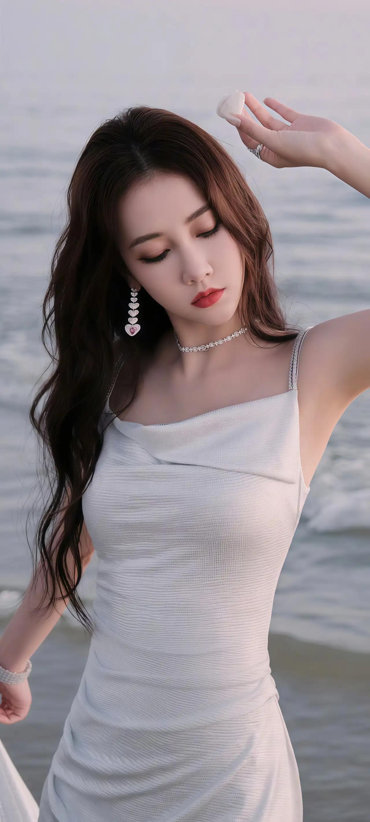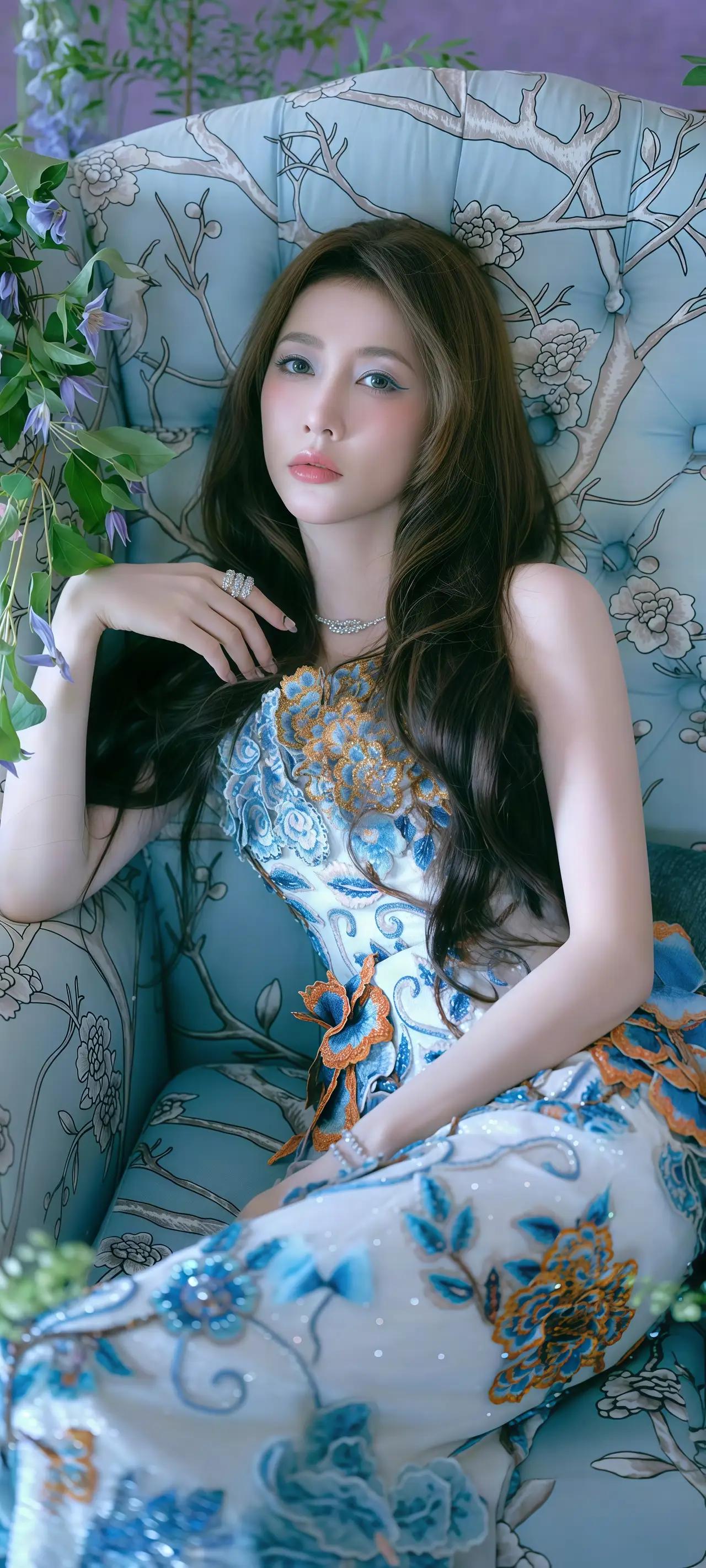 蓝调的墙面 鎏金的椅背 仿佛她量身筑就的舞台 一袭白裙垂落 线条如月光流淌般流畅