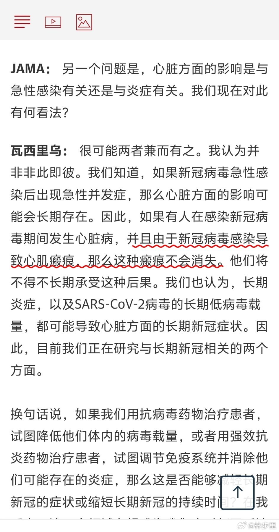 ✨因此,如果有人在感染新冠病毒期间发生心脏病,并且由于新冠病毒感染导致心肌瘢痕,那么这种瘢痕不会消失。他们将不得不长期承受这种后果。