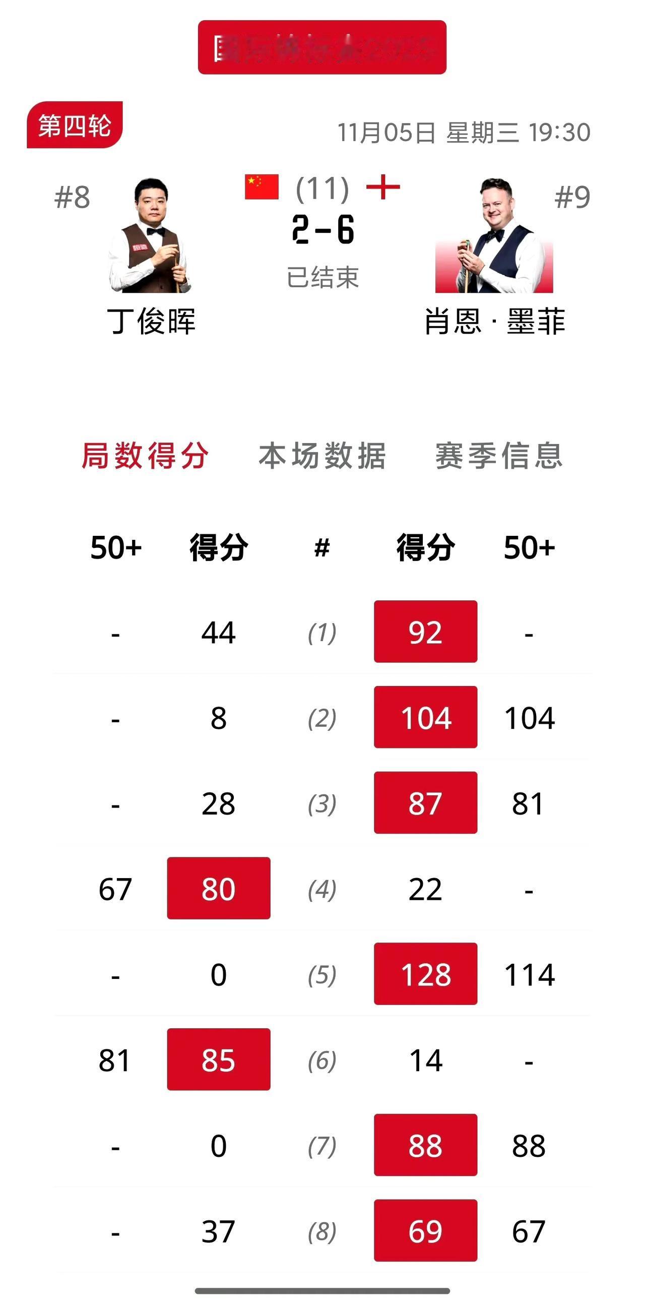 丁俊晖惨败墨菲无缘八强!这比赛看的人真的是沮丧,彻头彻尾的失败,毫无抵抗力,丁主任面对墨菲完全不会打球了,莫名其妙的失误让人不可思议,连续三站中国赛事全部被墨菲打败,这非常让人气愤,为什么就打不赢墨菲?打其他人还比较有信心,遇到大嘴就完了,到达什么原因?