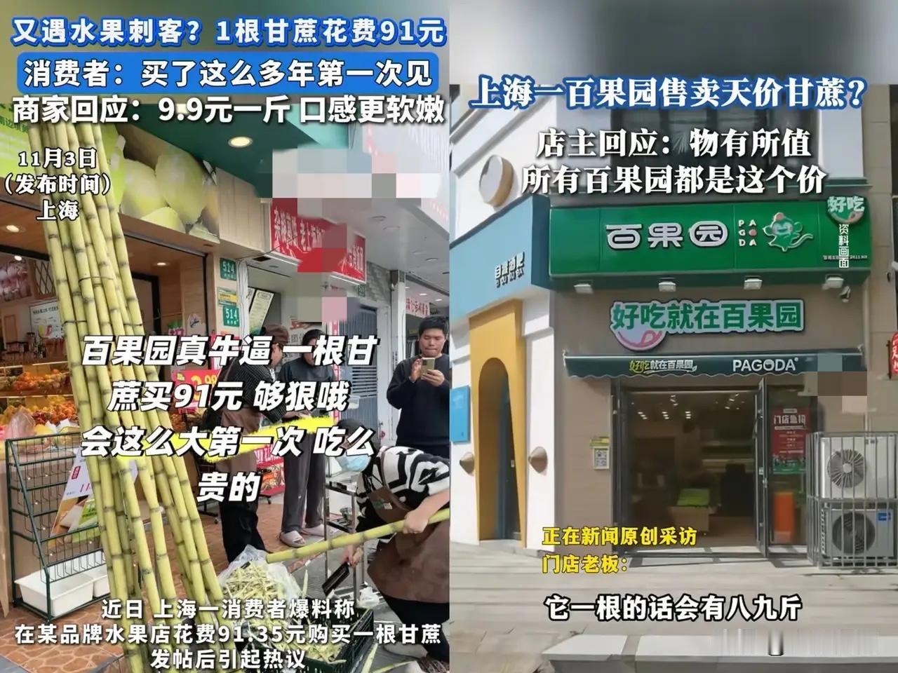 上海一男子在水果店买了根甘蔗,结账时,竟被告知要91元!由于已经削皮,男子只能无