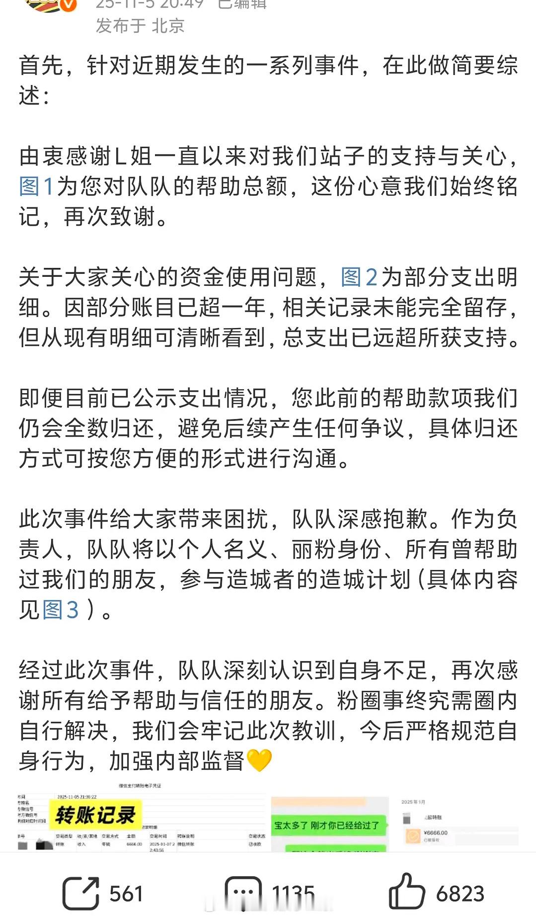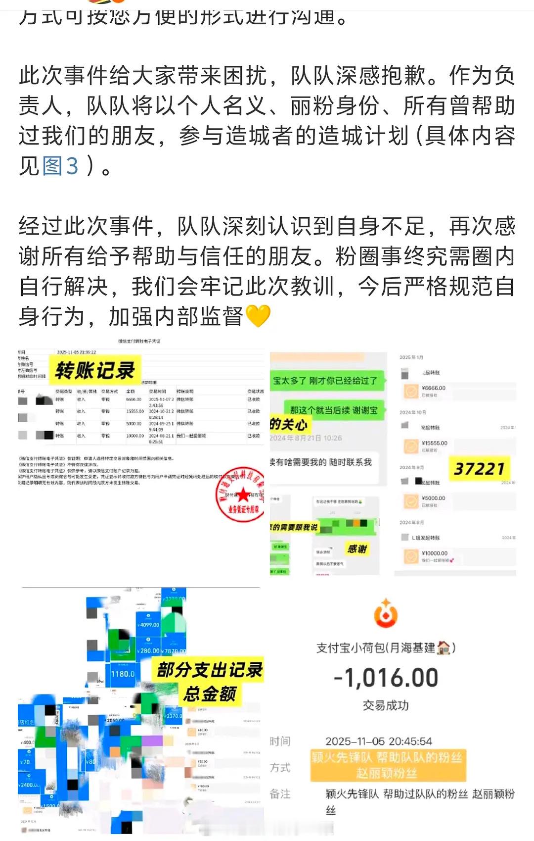 目前是赵丽颖的站子给出明细并且承诺归还所有💰,其他散粉陆续归还了收过的🧧