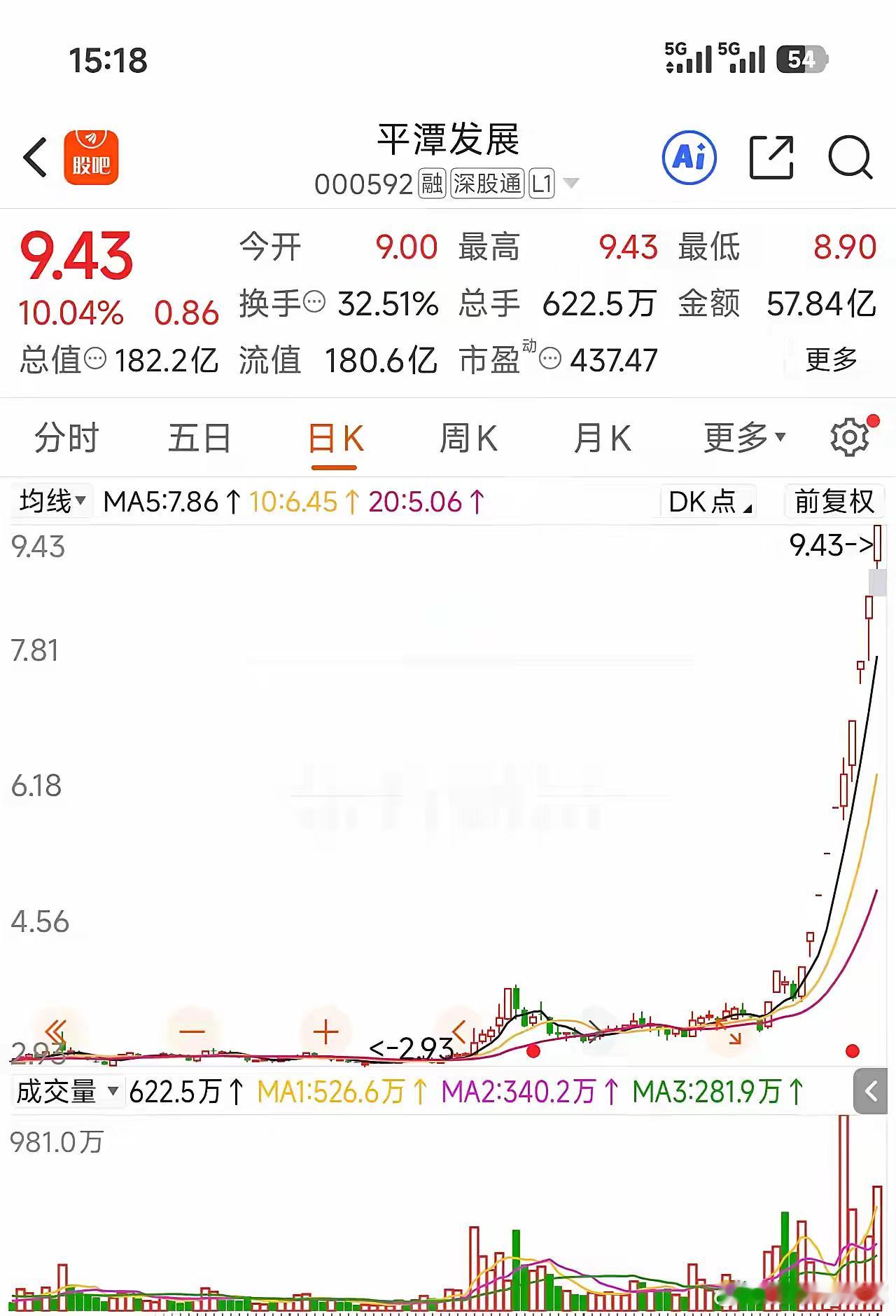 即便是上市公司发布风险提示公告,市场完全无视,仍然毅然决然的拉涨停,封涨停。平潭发展今天成交量57.84亿元,换手率高达32.51%,上周四更是高达50%的换手率。短线投机资金在疯狂博弈。