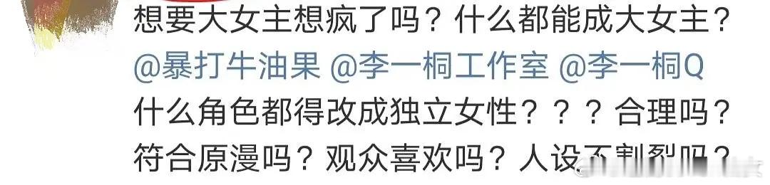 女主ooc全平台翻车了,都把自家理智粉给气跑了。正常看过这剧的人,谁看不出来了呢,也都知道即使维权应该去找wbx和gzs反思,而不是癫癫地找无辜男主开骂。你说你甩锅谁不好甩锅男主,那个全剧内核最准的角色,最精准的演技,最贴主线的剧情线,到底是多春虫虫才会从那么多人里挑了一个从里到外都无懈可击的角色来为自己魔改ooc甩锅?