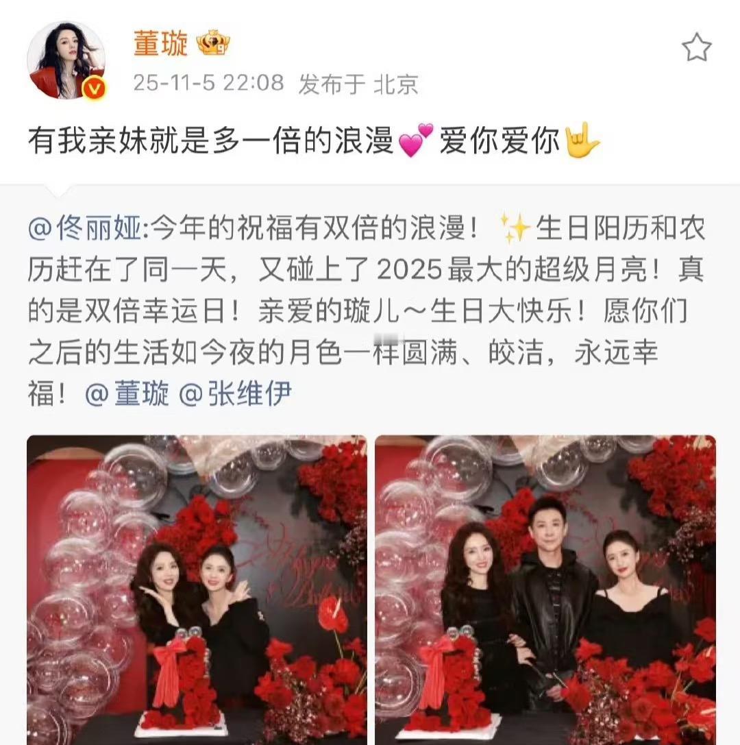 佟丽娅发文为闺蜜董璇庆生~~! 果真还是好闺蜜。 董璇过生日佟丽娅送上了祝福,还