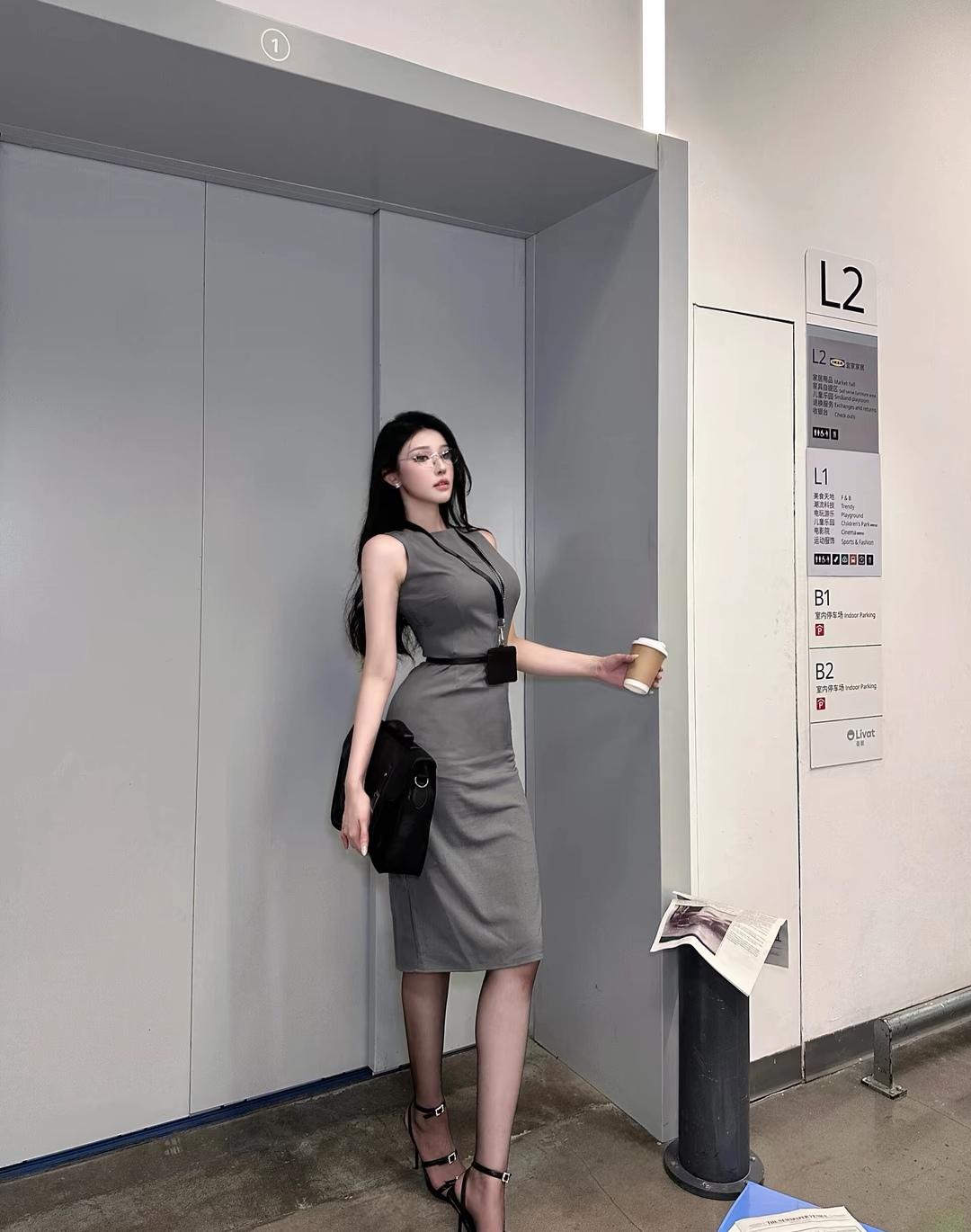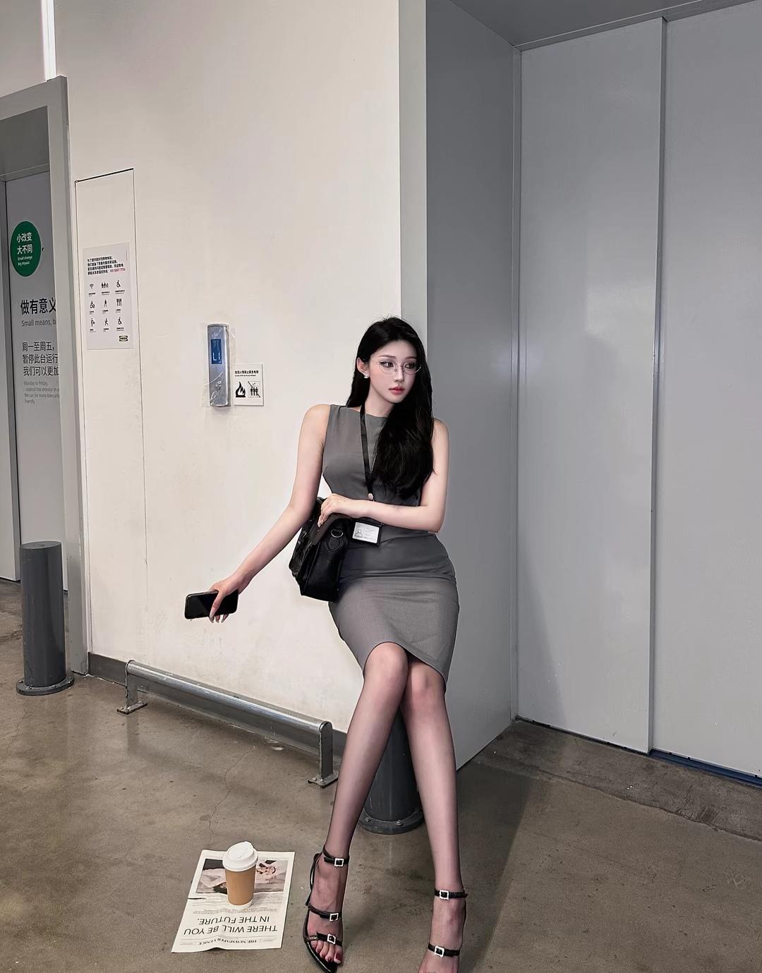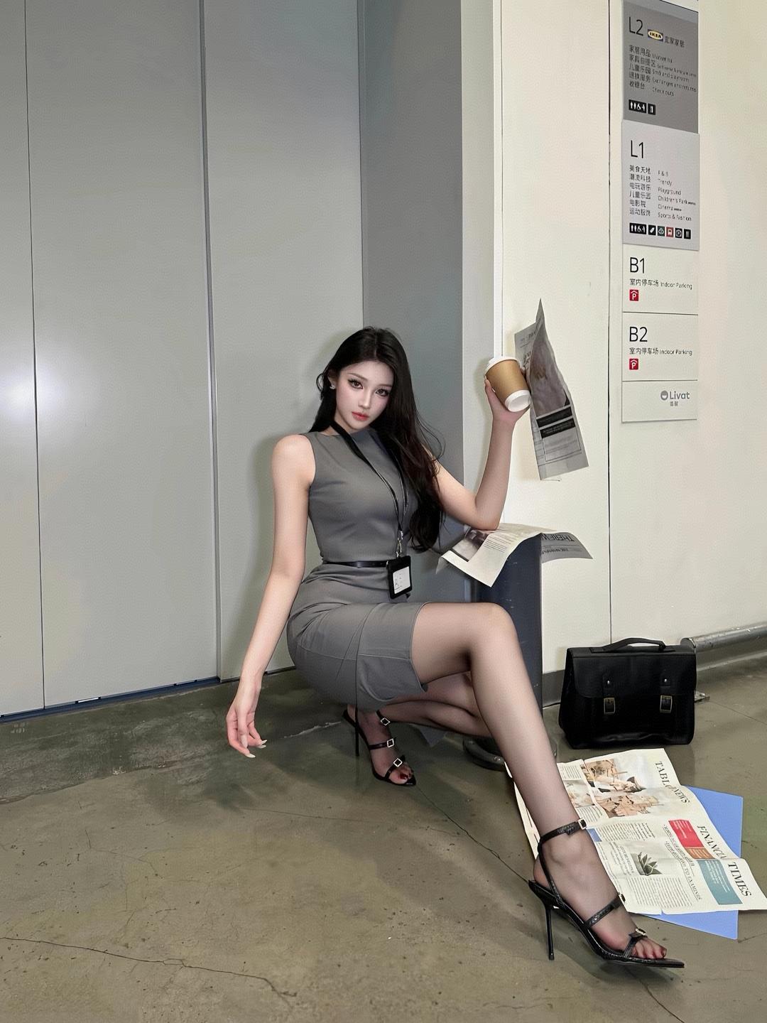 优雅都市风,浅黄色连衣裙搭配高跟鞋,享受悠闲时光。
