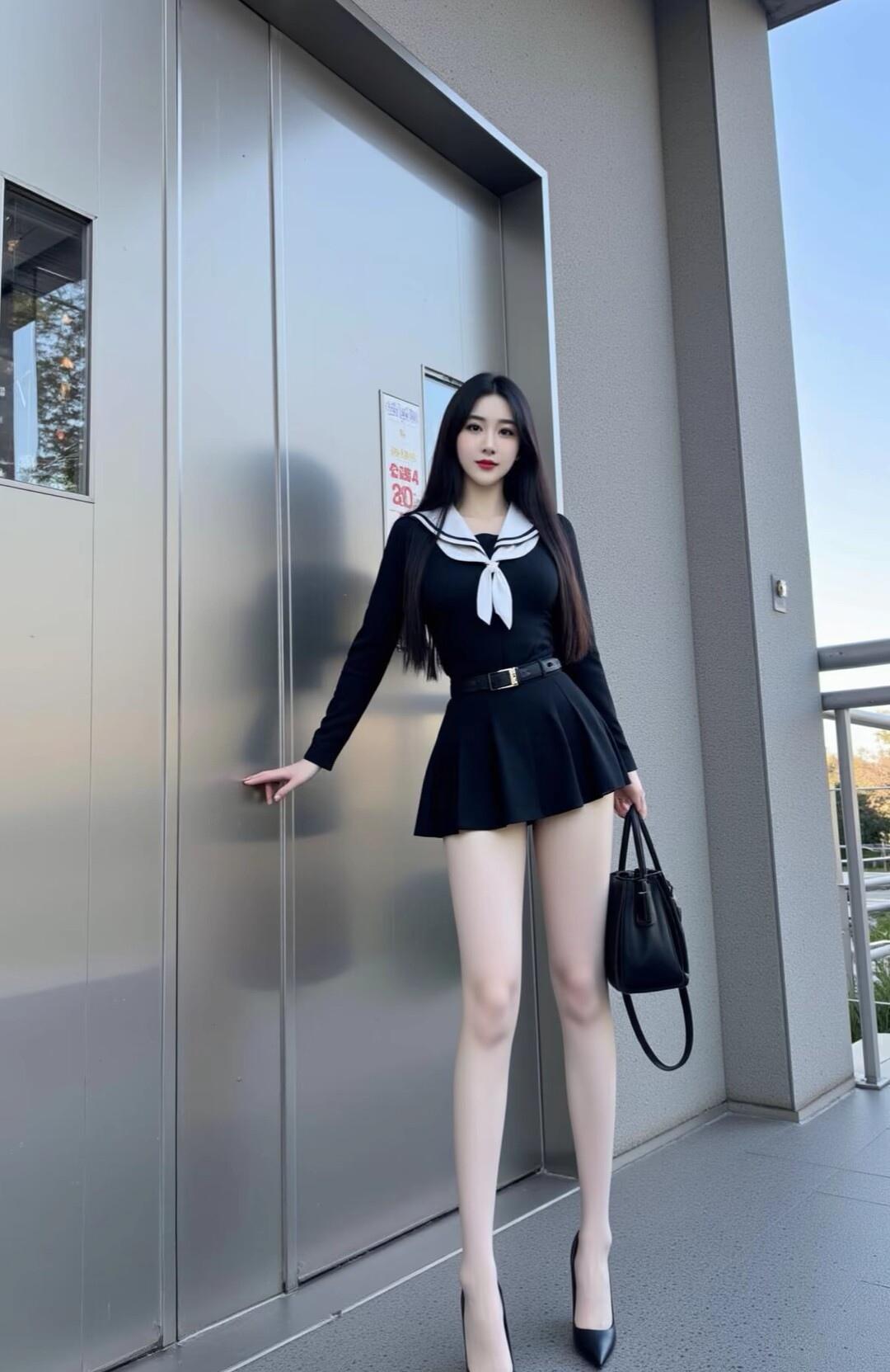 都市时尚少女,优雅白裙,手提包相伴,都市风范。