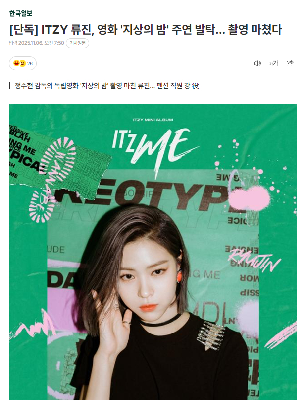 独家:ITZY留真被选为电影《地上之夜》主演,拍摄完成