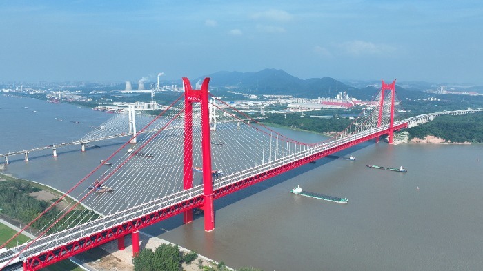 【厉害了!#铜陵长江三桥今日正式通车# 为世界首座“双层斜拉-悬索协作体系大桥”】11月6日,铜陵长江三桥正式通车,皖江之上再添飞虹。大桥路线全长11.88公里,上层搭载高速公路,下层搭载高速铁路和普速铁路。值得关注的是,大桥采用主跨988米的“斜拉-悬索协作体系桥”方案,是世界首座公铁两用双层斜拉-悬索协作体系大桥。(大皖新闻)
