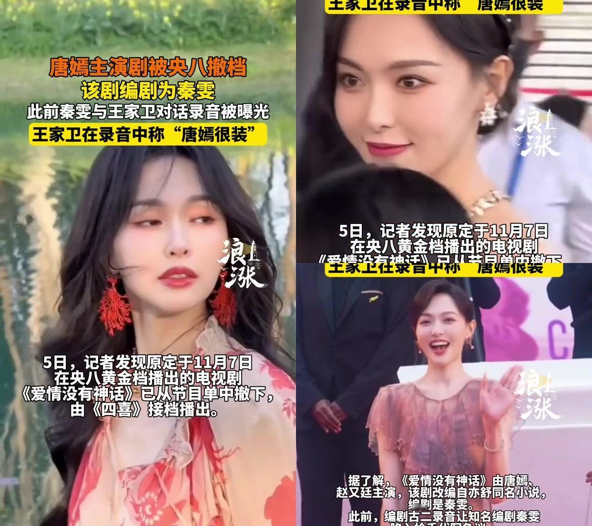 唐嫣今年也太惨了吧! 原定于11月7号央八黄金档的《爱情没有神话》,头天突然从节目单消失,换成《四喜》接档。 这部剧是她和赵又廷主演的,编剧秦雯,就是之前被曝枪手代写、袭警被捞的那个。 更绝的是,秦雯和王家卫的录音里,王家卫居然说她很装。 有人说秦雯的烂事连累了剧,唐嫣纯纯被坑;有人说王家卫才双标,《繁花》端着上海腔调,还好意思说别人。 还有哈尔滨有人七八年前偶遇她:离得超近,人美又亲和,助理递水都笑着说谢谢。 演员兢兢业业拍剧,凭啥为别人的错买单?王家卫说人装,怕不是想让她配合啥没得逞? 大家怎么看?