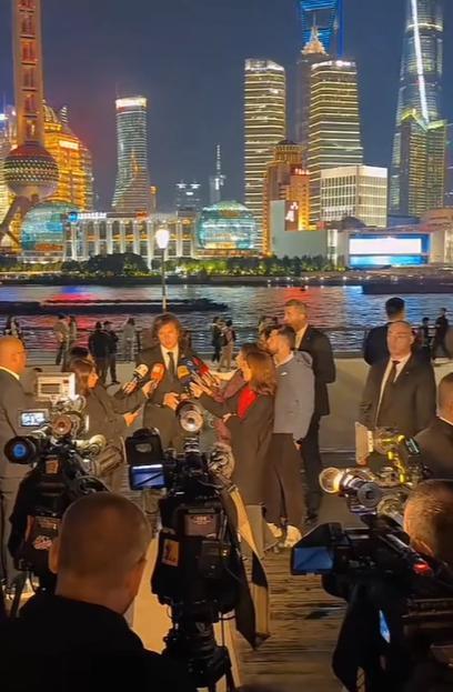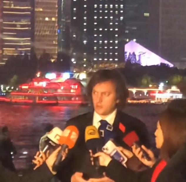 格鲁吉亚总理二刷外滩,接受记者采访!11月5日格鲁吉亚总理又一次来到上海外滩,这次不是来逛外滩,而是以外滩的夜景为背景接受记者媒体采访。 只见他穿西服革履,帅气的外表非常迷人,前面是记者递过来的话筒,后面是外滩夜景,选择在这里接受采访,想必总理先生对这里很喜欢,因为他之前已经来过一次了。 面对记者,总理先生从容回答他们提出的问题,而且不少记者采访完并没有走,而是欣赏美丽的上海外滩景色,不少网友都说格鲁吉亚总理这是免费为上海外滩做宣传呀!