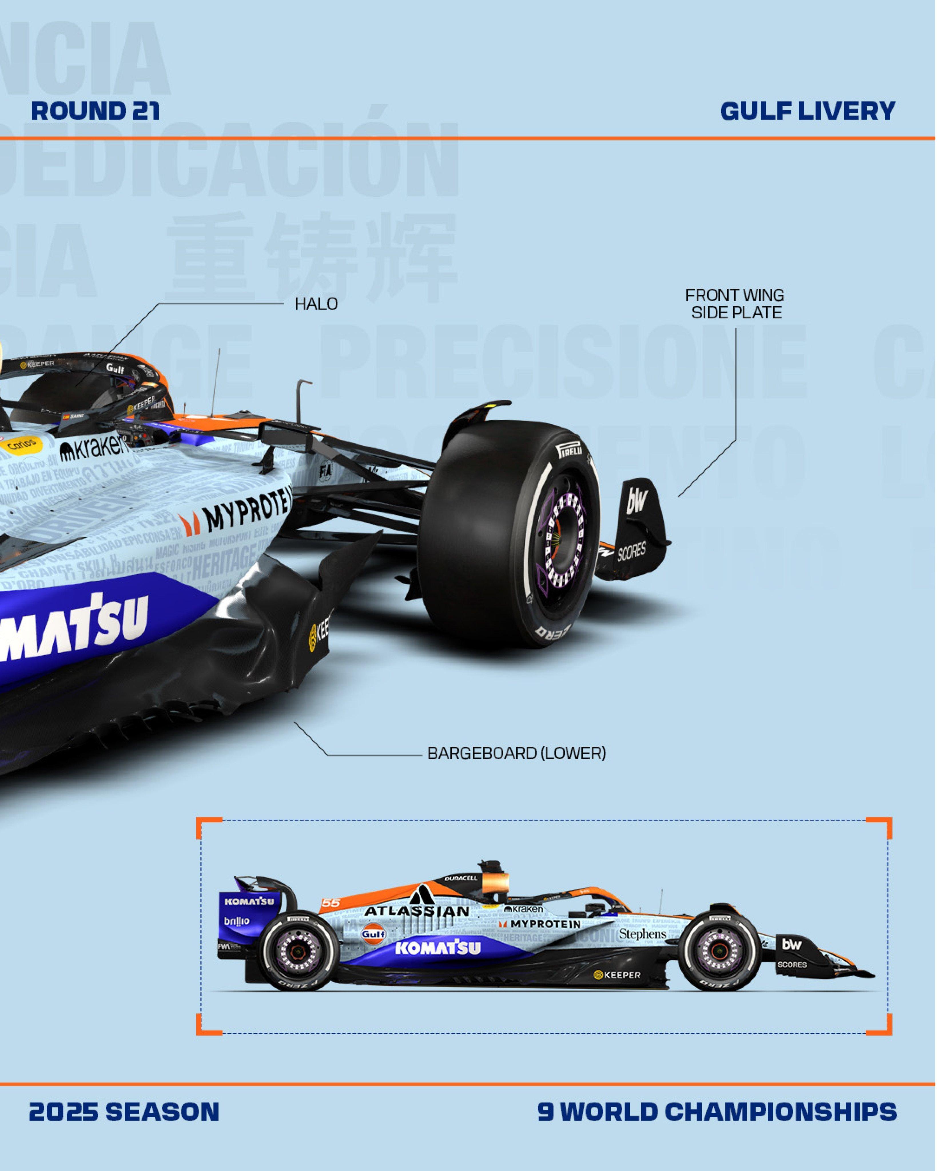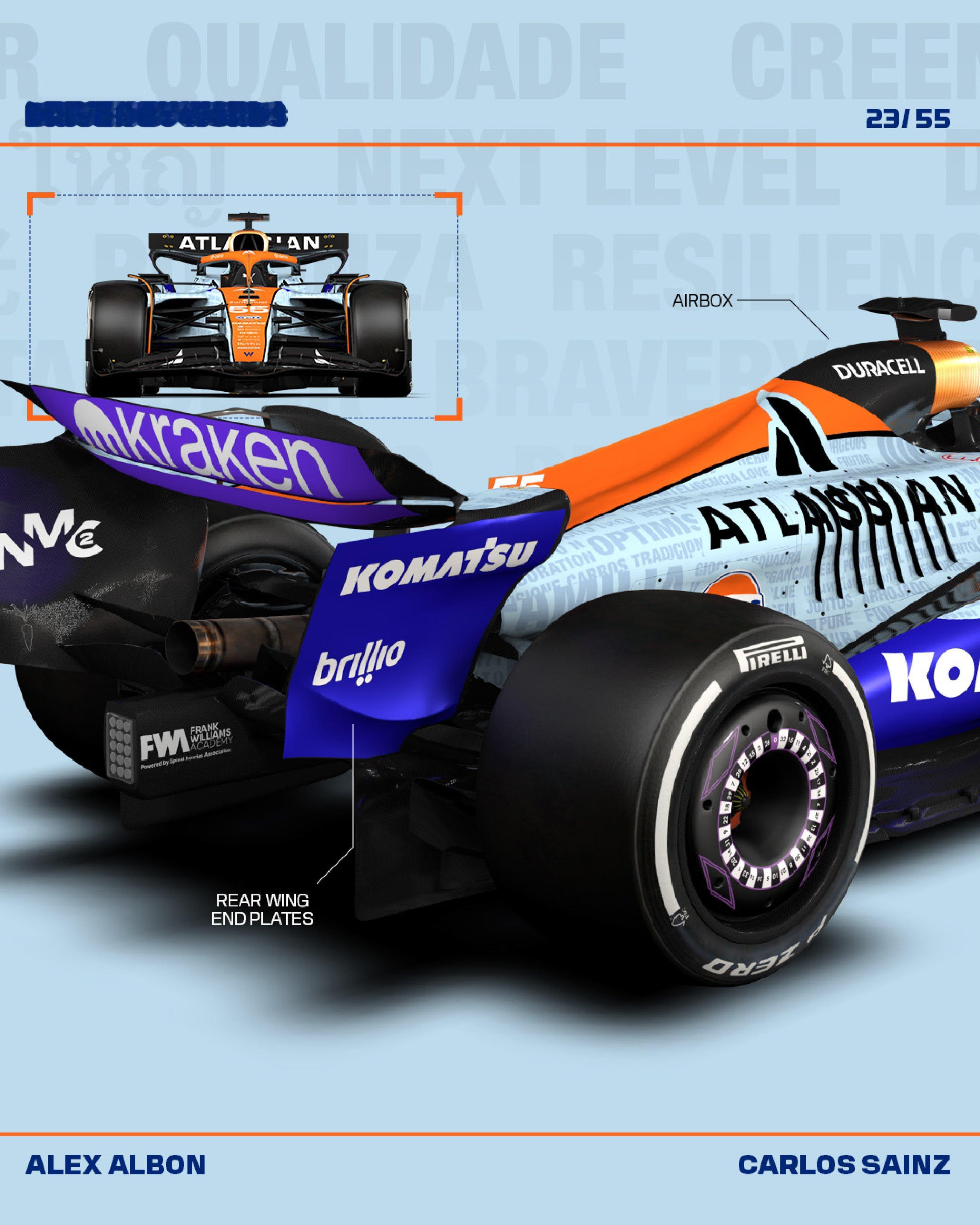 威廉姆斯车队发布本周F1圣保罗🇧🇷大奖赛特别版赛车涂装~海湾石油🧡👀