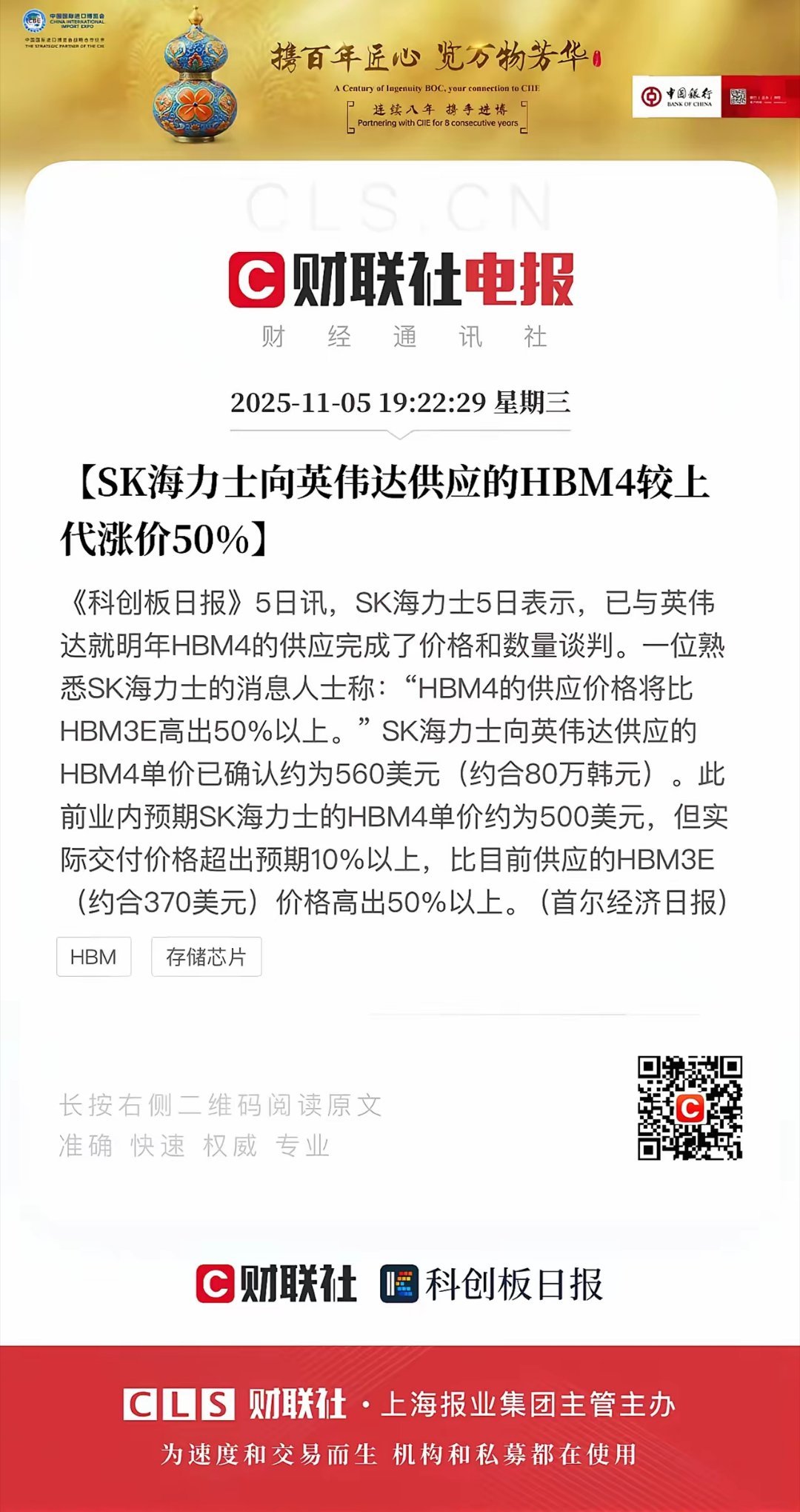 昨天,外围存储芯片领域再传重磅消息——海力士宣布明年新产品将涨价50%,这一消息直接引爆市场情绪:昨晚美股市场中,美光等存储芯片企业开盘走高,按照市场联动逻辑,今日A股存储芯片板块大概率也将顺势走强。