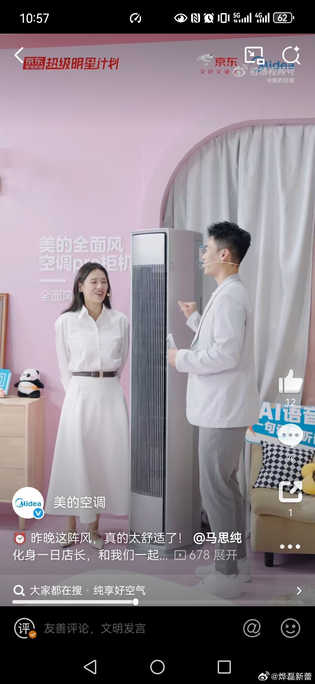 马思纯直播分享好状态秘诀 马思纯居然直播美的空调了,马思纯的强大粉丝群必然带动美的空调的销售和推介。我其实一直也喜欢用美的空调。