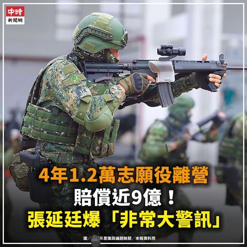 台湾 投诚APP台媒:台军自2021年至2024年间共招募志愿士兵5万2674人,但未服满现役最少年限即提前离营者高达1万2884人,比例达24.47%,累计应缴回赔偿金额近8.9亿元新台币。前台空军副司令张延廷表示,宁可赔钱走人,就知道留不住人,这个是非常大的警讯。 ​​​