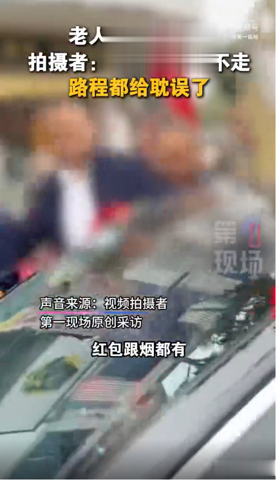 另外,多起事件中拦截婚车的人员为老人,新人出于对年长者的尊重,不好强势拒绝,多会选择“花钱买平安”。例如今年10月,河南周口一对新人遇到多位老人拦截婚车,向其派发了红包和烟后,老人依旧不肯离去,直到司机出面将老人拽离,车队才得以通行。