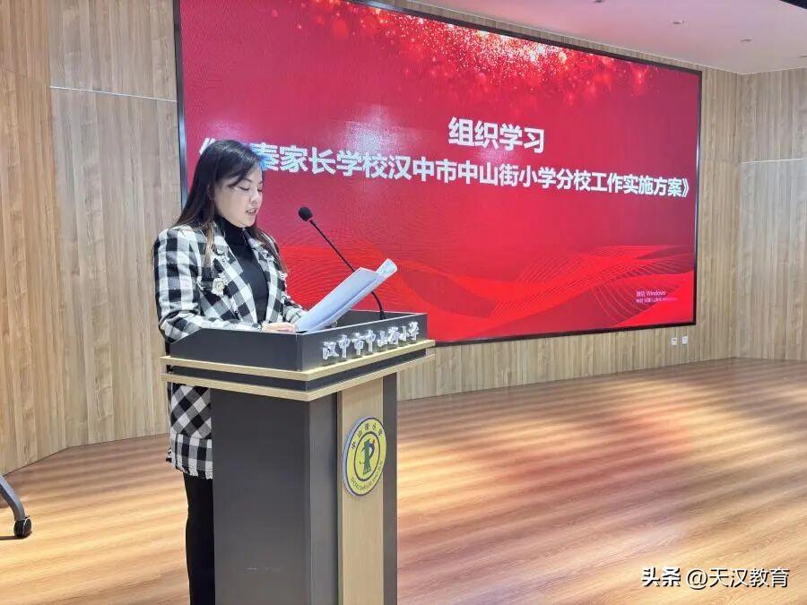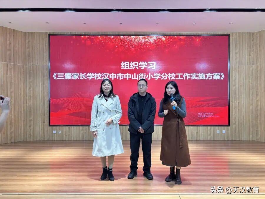 三秦家长学校汉中市中山街小学分校揭牌仪式暨2025年家委会成立大会在学校多功能厅隆重举行。学校校级领导与全体家委会成员齐聚一堂,共同见证“双向奔赴、家校共育”成长盛宴。