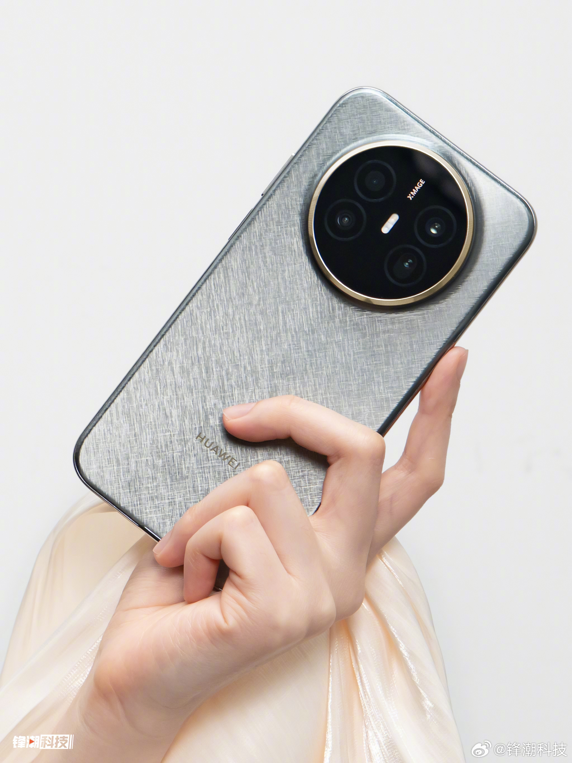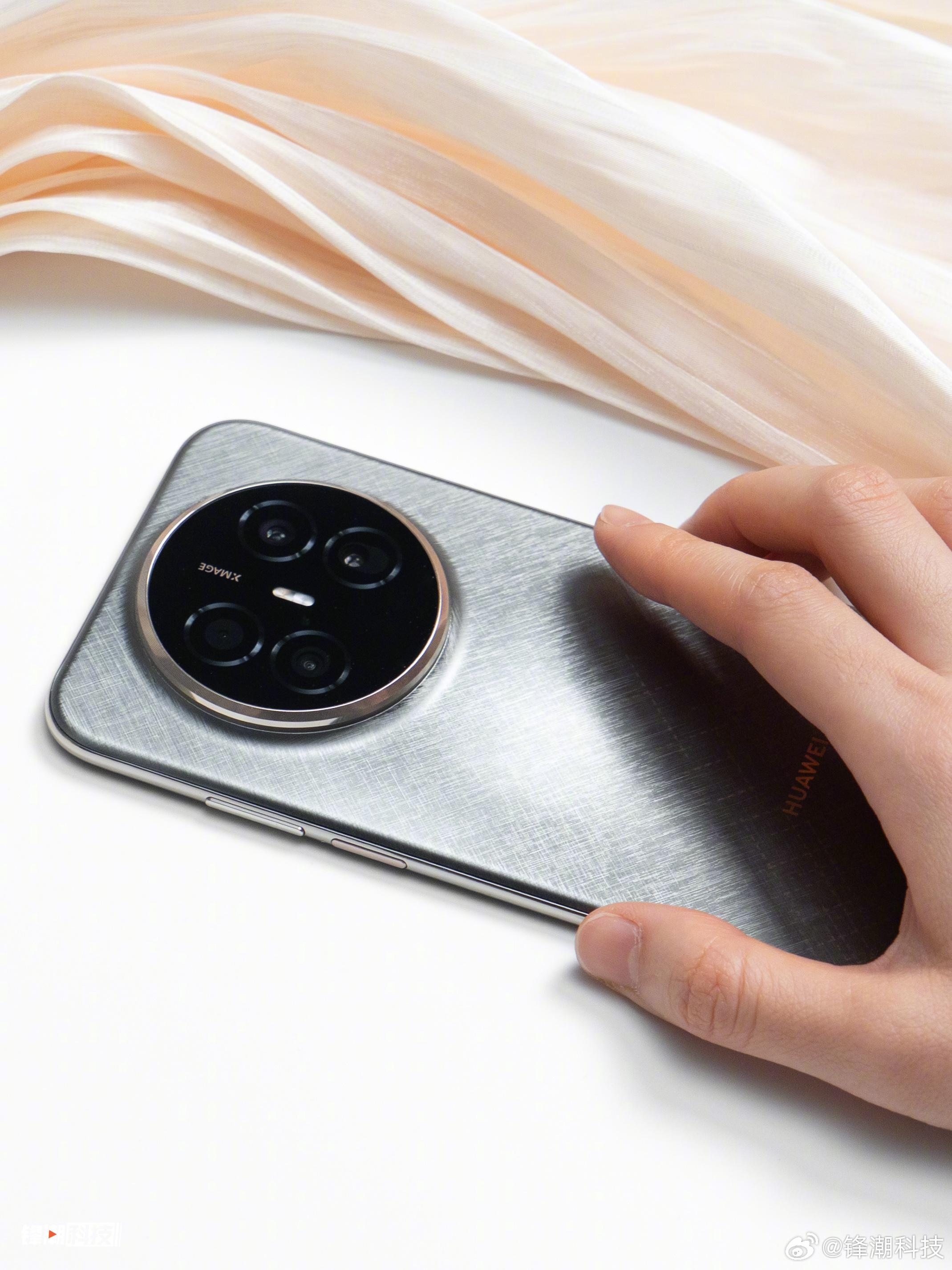 镜头模组回归华为标志性设计经典星环,上手的这款为「金丝银锦」配色,后盖处呈现出交织的细腻金银纹理。此外还有「羽衣白」和「曜金黑」两款经典配色。