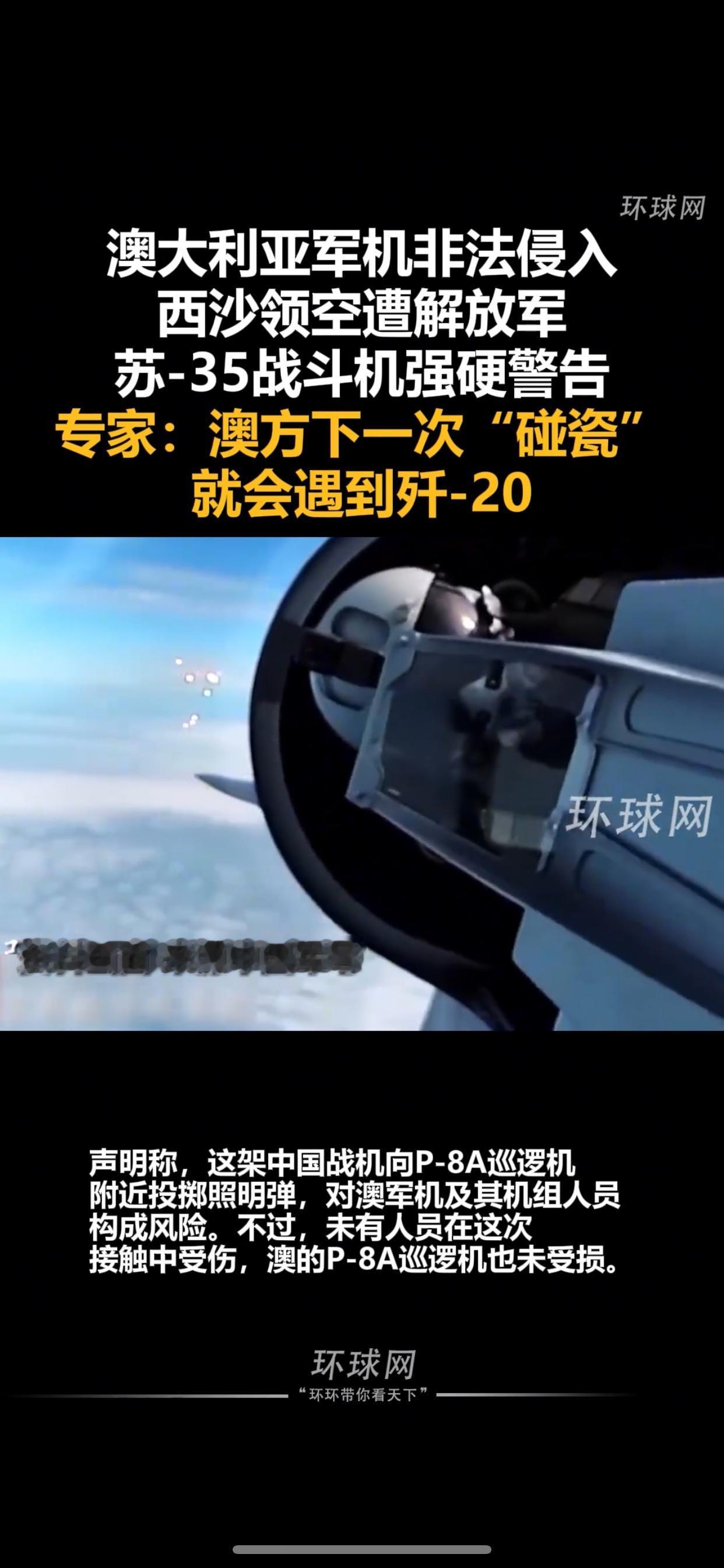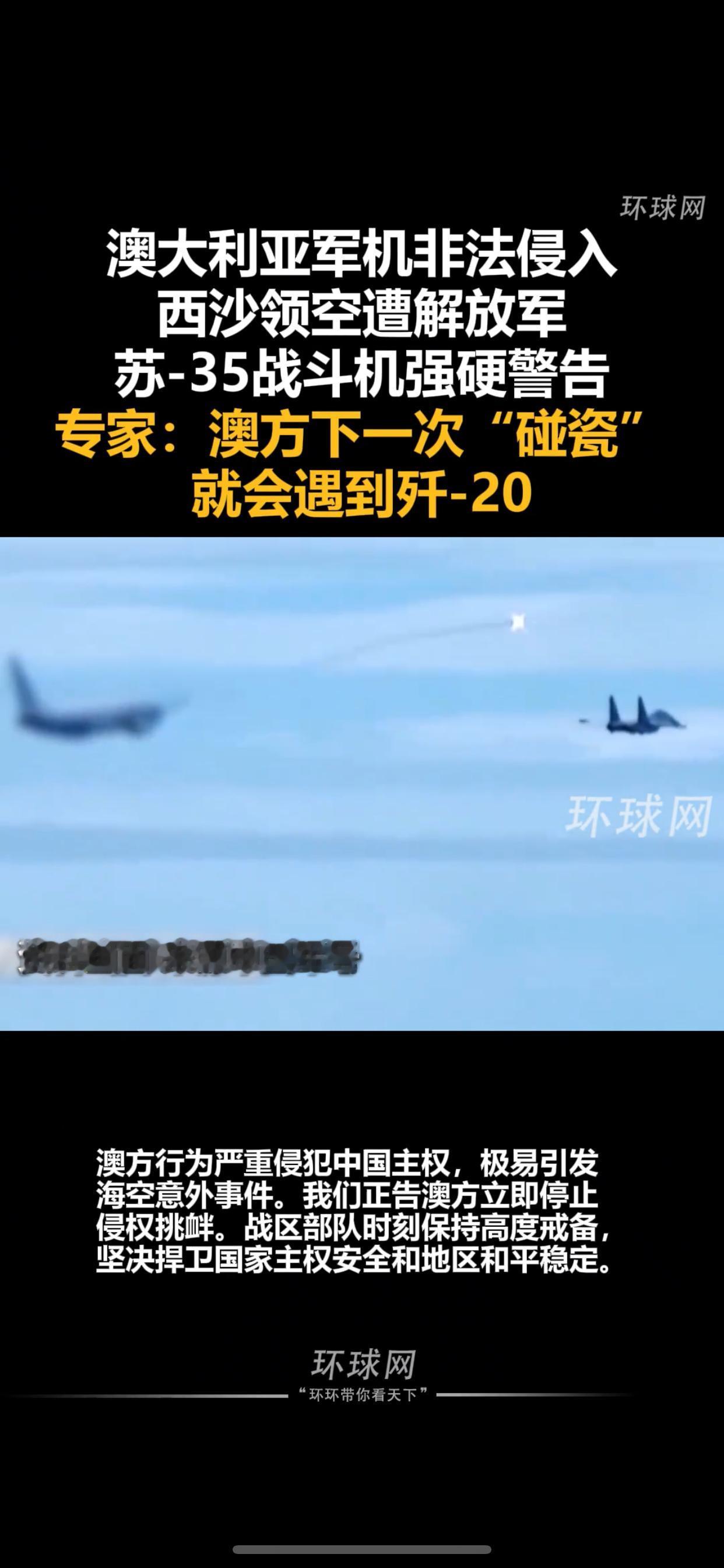 澳军机侵西沙领空遭驱离 专家:下次或遇歼-20 10月19日,澳大利亚1架P-8A军机未经批准非法侵入中国西沙领空,解放军南部战区立即组织海空兵力,出动苏-35战斗机依法跟踪监视,并通过发射照明弹实施警告驱离。 澳国防部反称中方行动“不安全不专业”,此举被指蓄意“碰瓷”。军事专家张军社指出,澳方为配合美国印太战略刷存在感,其行为严重侵犯中国主权,极易引发意外。值得注意的是,这并非澳P-8A首次挑衅,此前2月的同类行为已遭中方反制。 南部战区强调将坚决捍卫主权安全,专家更警示,若澳方再犯,下次遭遇的可能就是歼-20隐形战机。