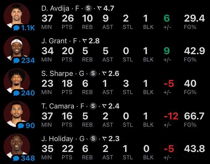 开拓者这场球真是惊天地泣鬼神,在落后22分巨大分差的前提下,在多次逼近比分后,终于完成逆转。而在第四节开拓者慢慢起势的时候,手感不佳的阿夫迪亚和霍勒迪也逐渐找到手感,投中关键球。虽然阿夫迪亚和卡马拉都出现了致命的失误,但好在开拓者最终是有惊无险拿下比赛。开拓者不仅终结了自己面对雷霆的16连败,也打破了雷霆的不败金身。不过,对我们来说比较遗憾的是小杨依旧没有能够获得登场时间,静下心来多练,总会有机会的。开拓者结束雷霆8连胜雷霆不败金身没了杨瀚森连续三场未登场