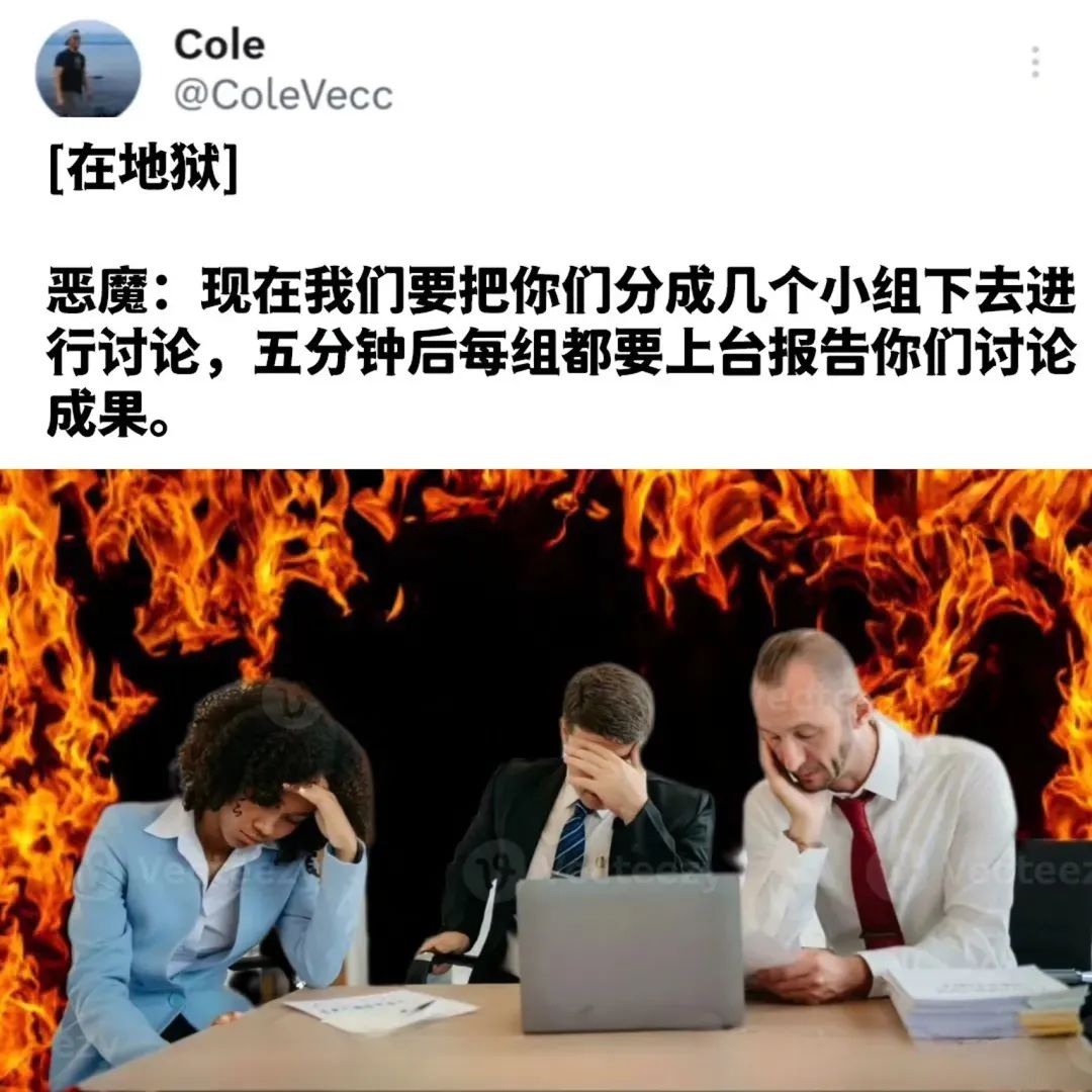 我们要把你们分成几个小组下去进行讨论,五分钟后每组都要上台报告你们讨论成果