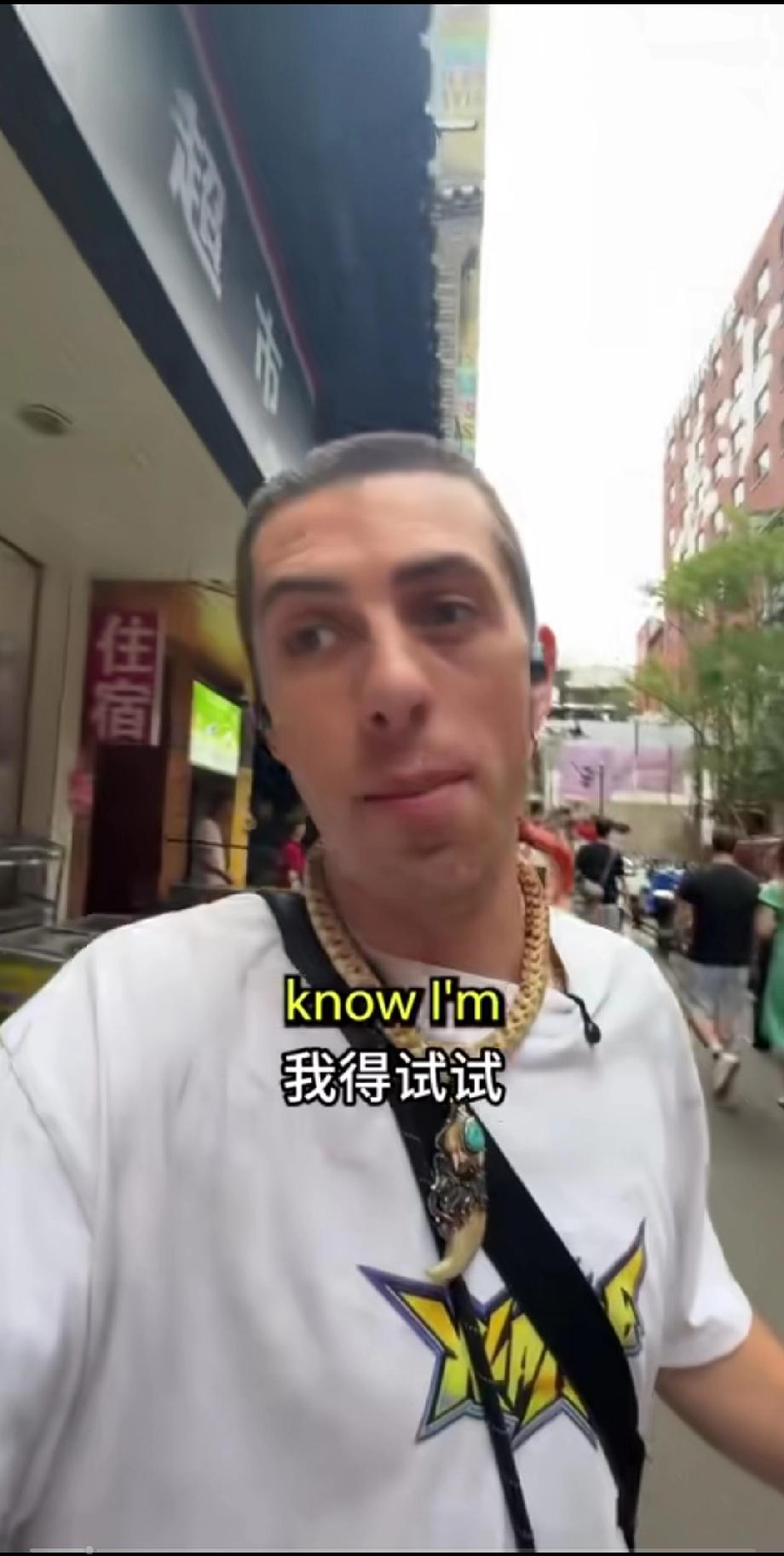 这个外国小哥实在是太搞笑了,他听说中国有各种奇奇怪怪的美食,于是就来到中国大街上