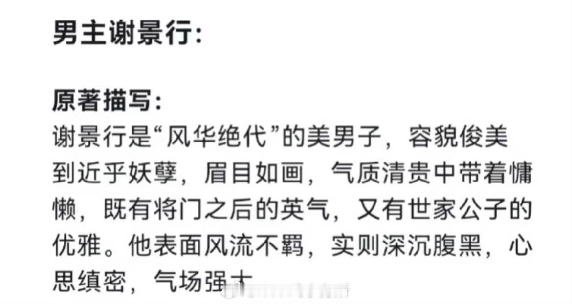 将门毒后谢景行描述,看过原著的觉得王鹤棣的适配度如何